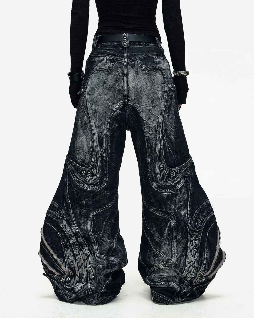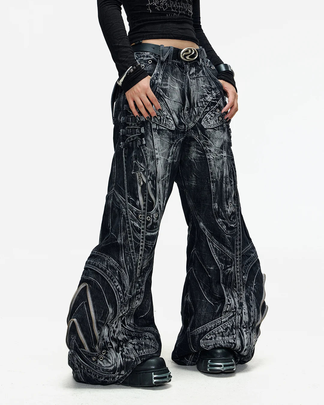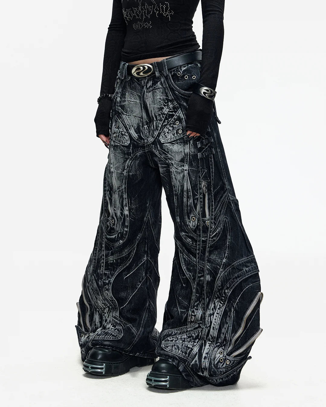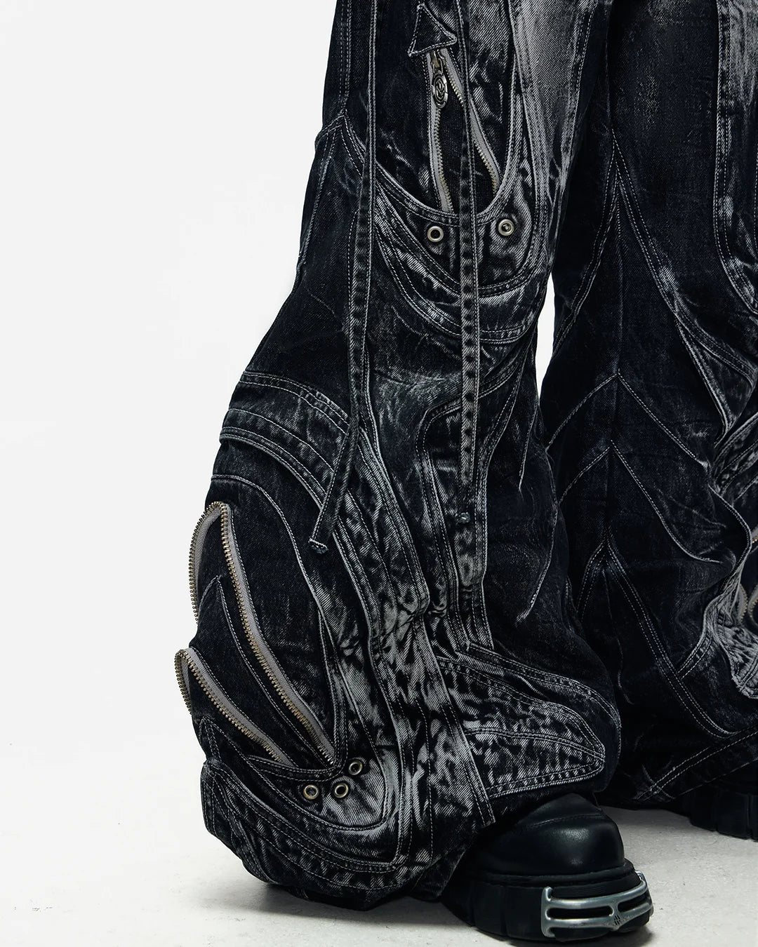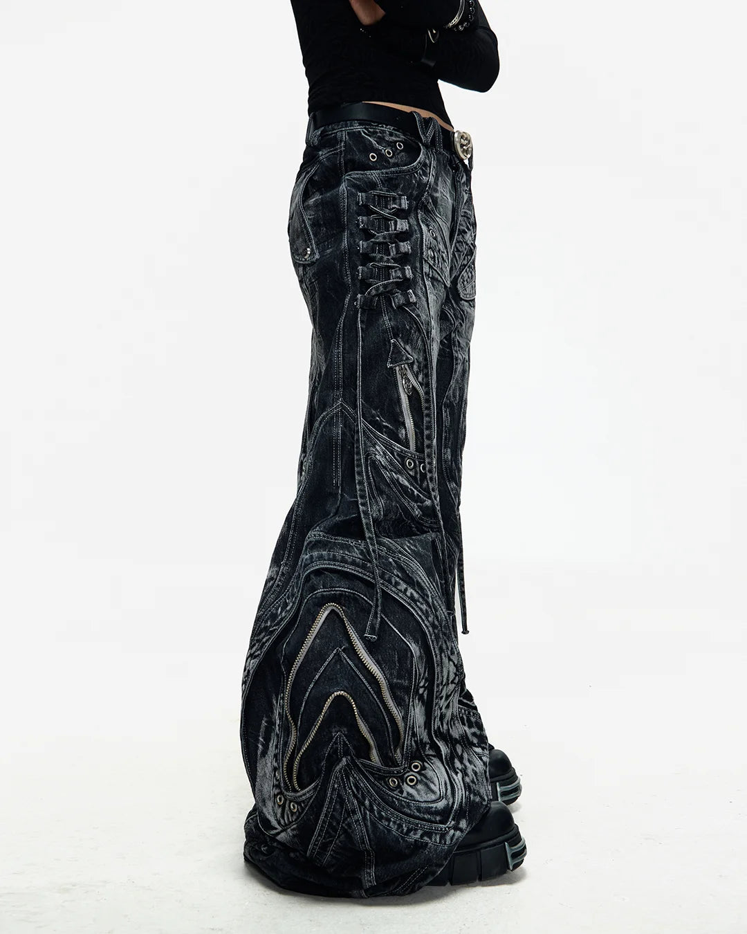 Deconstructed Exaggerated Flared Patchwork Jeans In Black