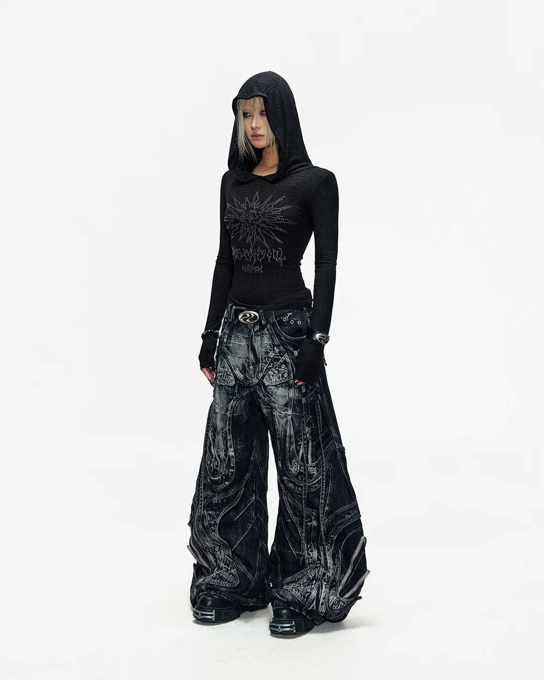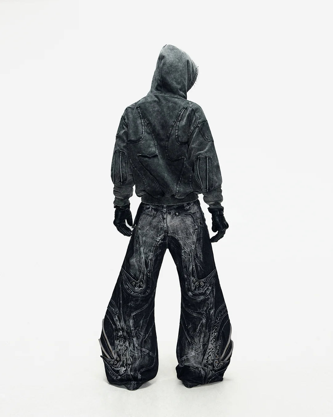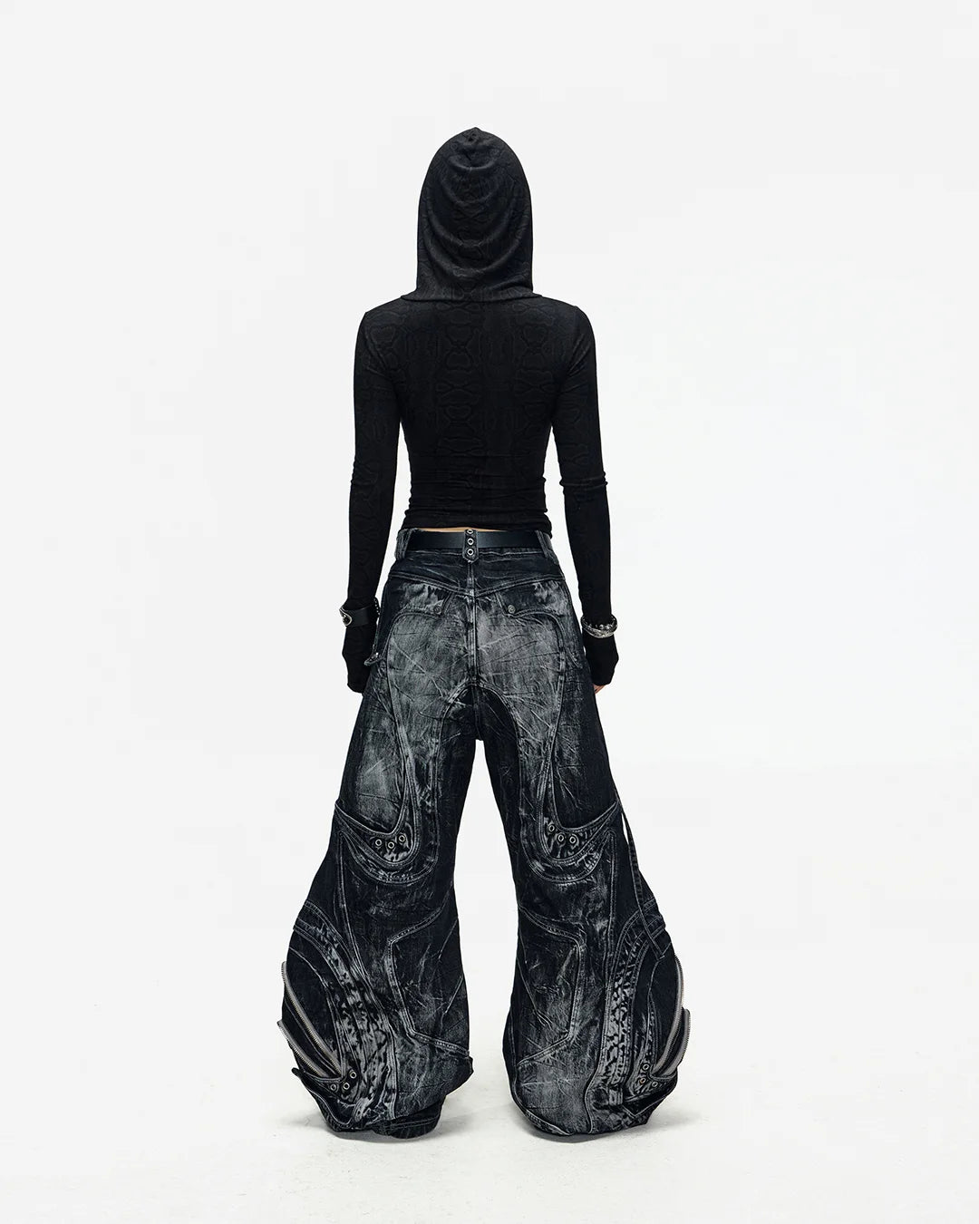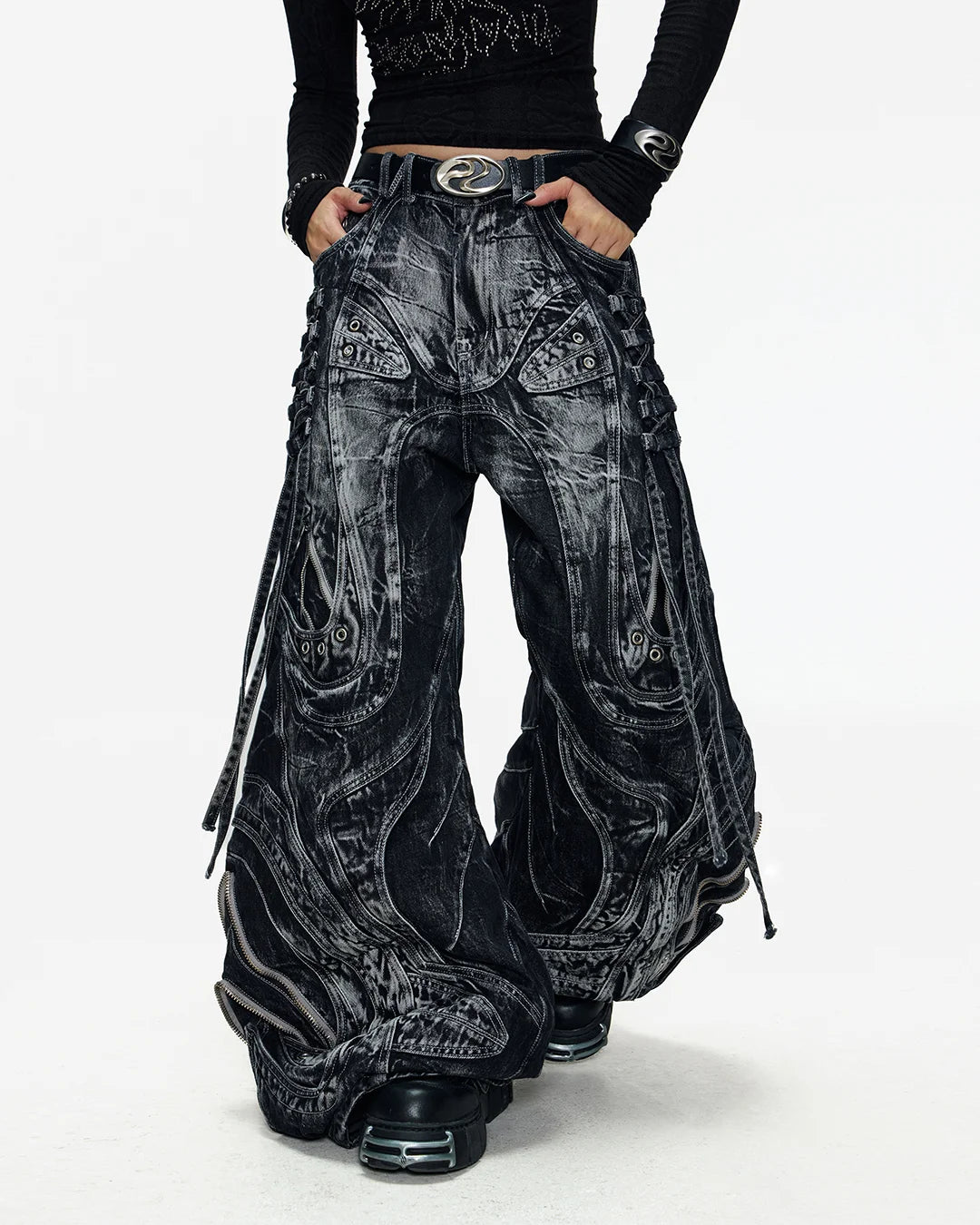 Deconstructed Exaggerated Flared Patchwork Jeans In Black