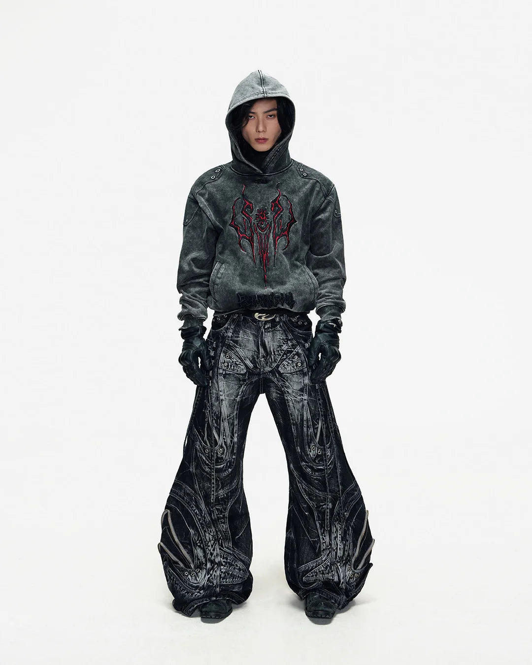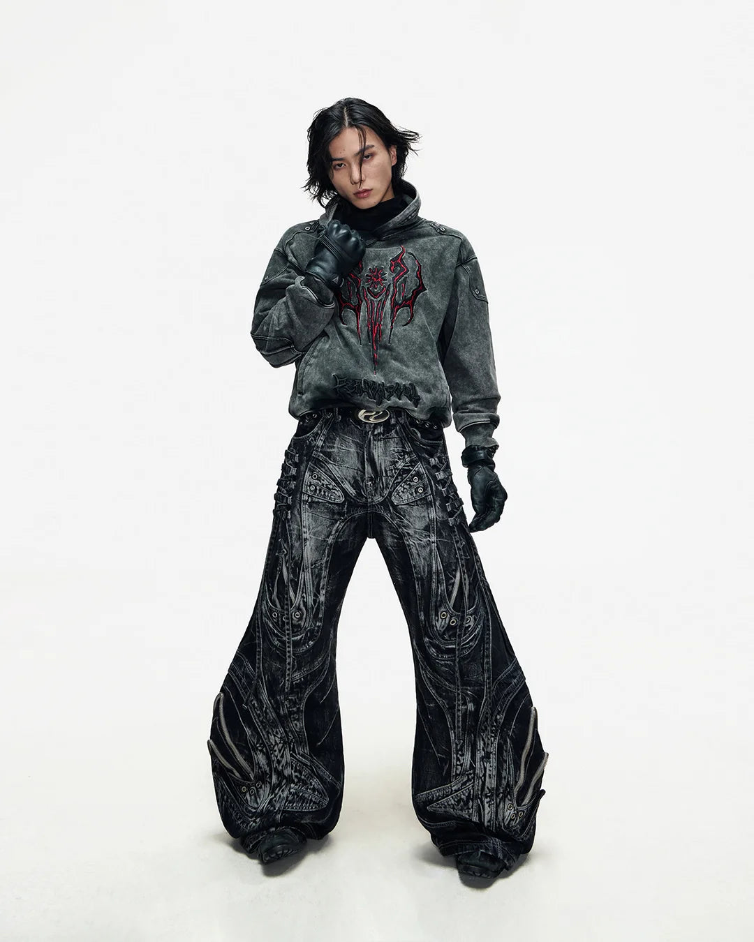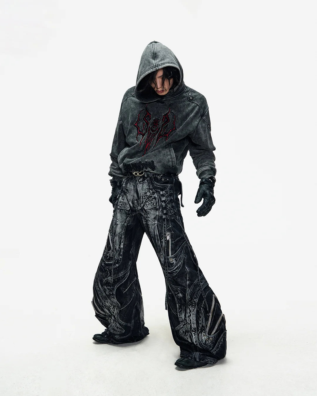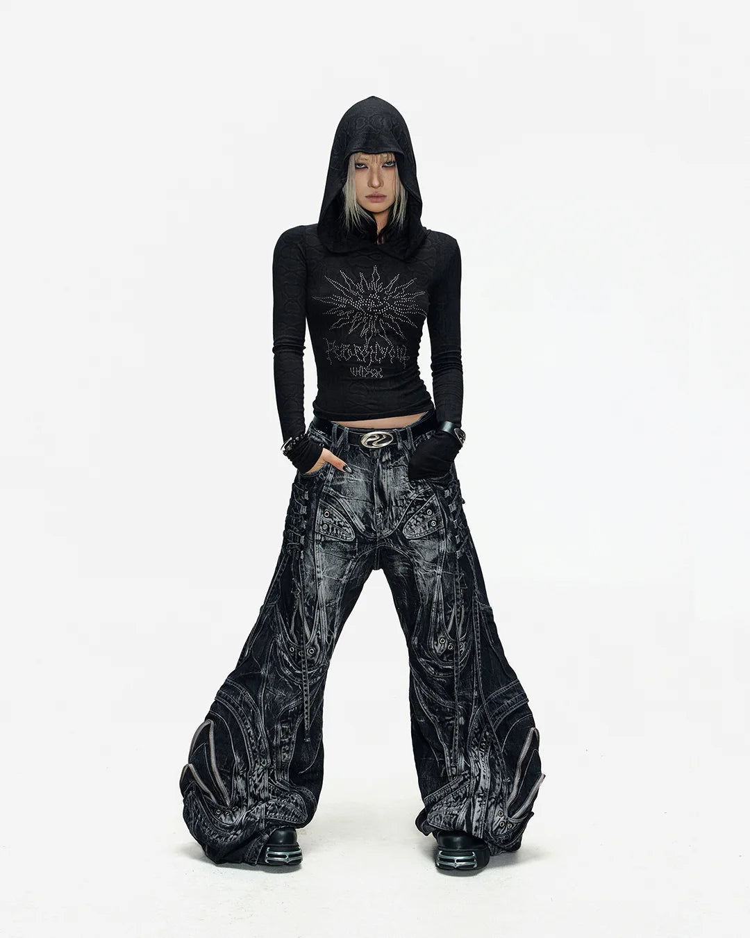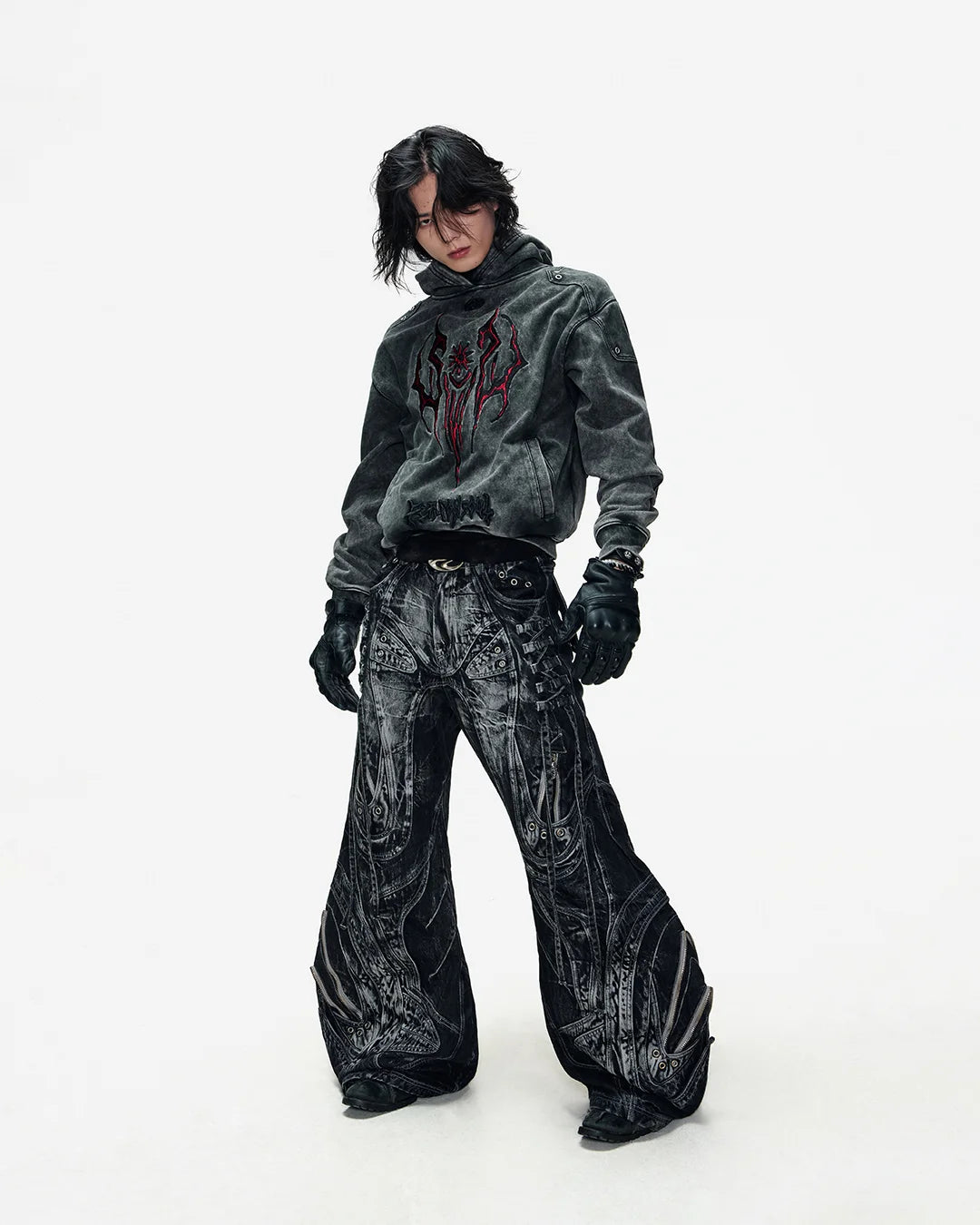 Deconstructed Exaggerated Flared Patchwork Jeans In Black
