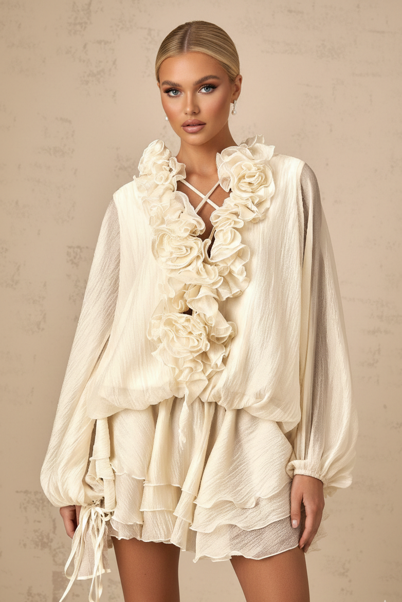 Care: Gentle hand wash in cold water or professional dry clean to preserve the delicate ruffle structure.
