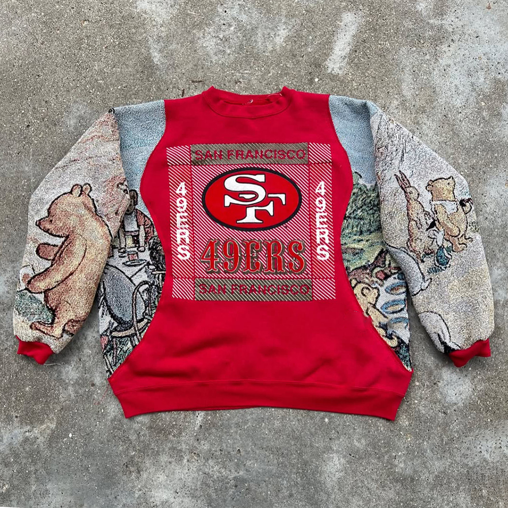 Fashion 49ers Print Patchwork Long Sleeve Sweatshirt