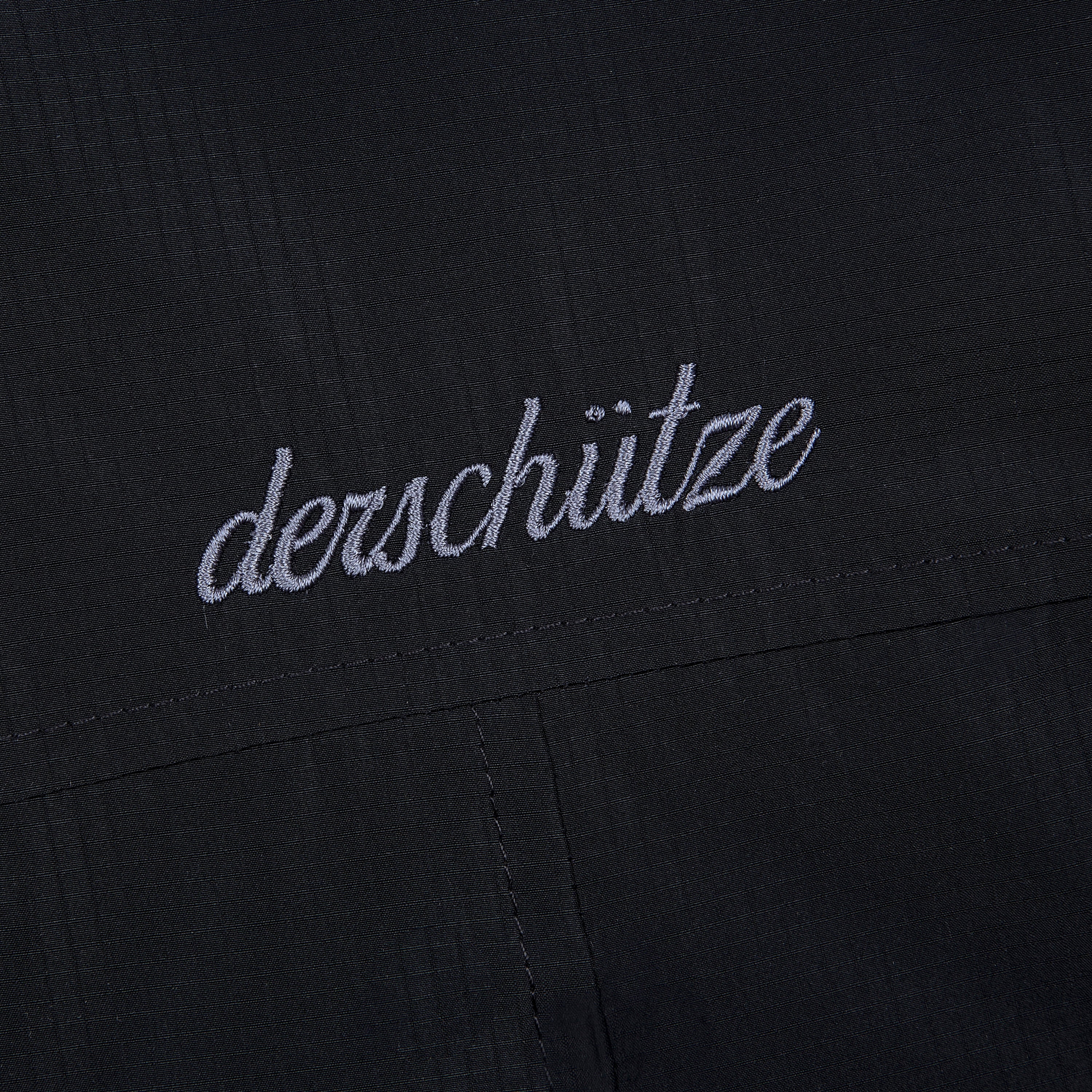 parachute fabric / fiber filling / collar from velvet fabric / ribbed hem and cuffs / embroidered collar with custom pins / embroidery on back / fits true to size