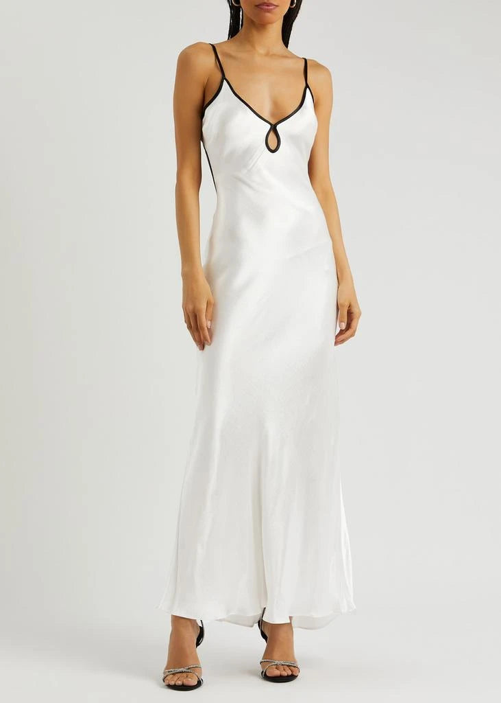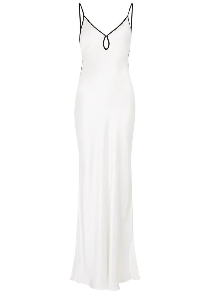 Ivory Noir Trim Satin Maxi Dress