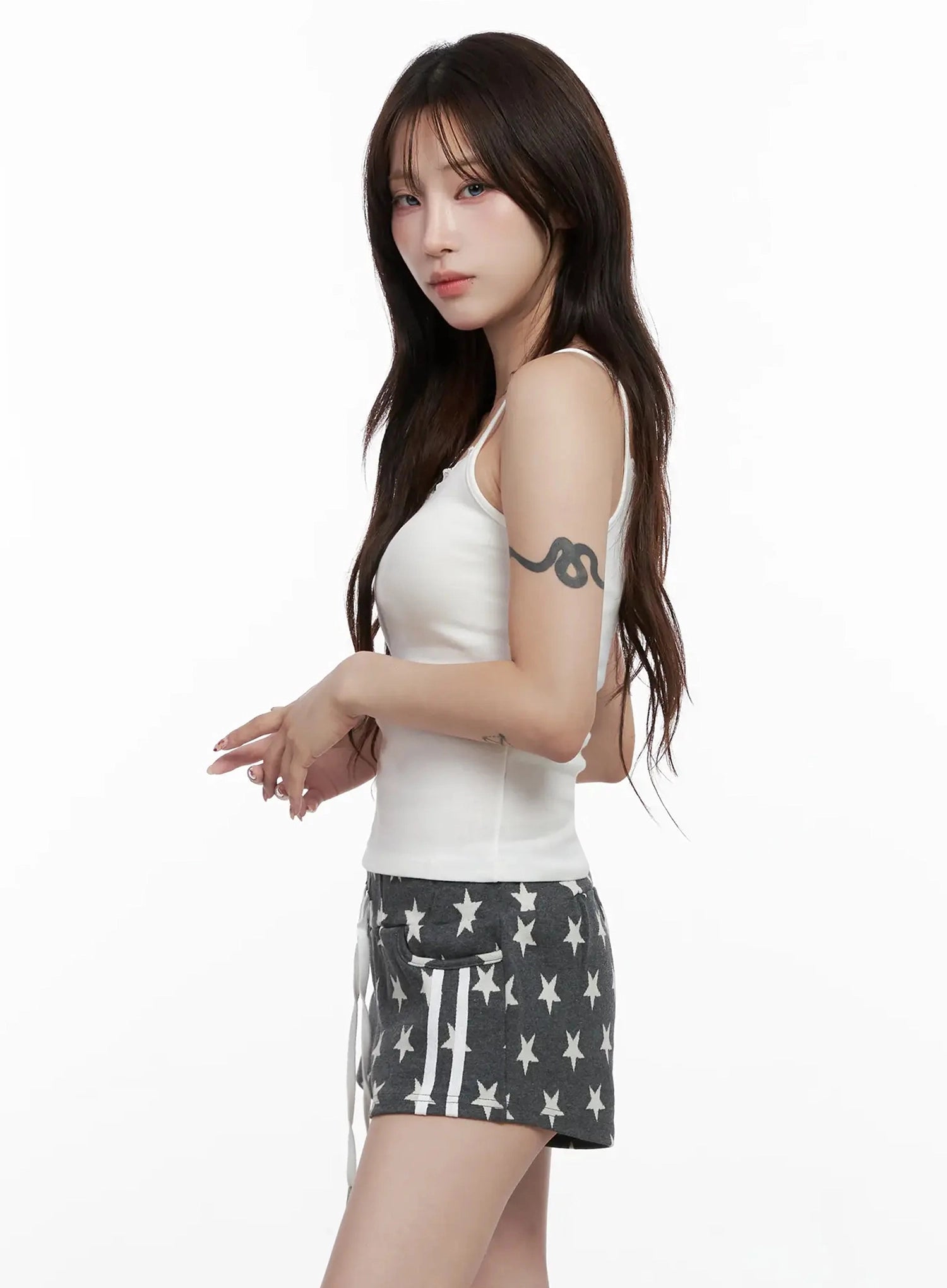 • Height : 5'3" | 160cm / Top : XS / Bottom : S (25 inch)