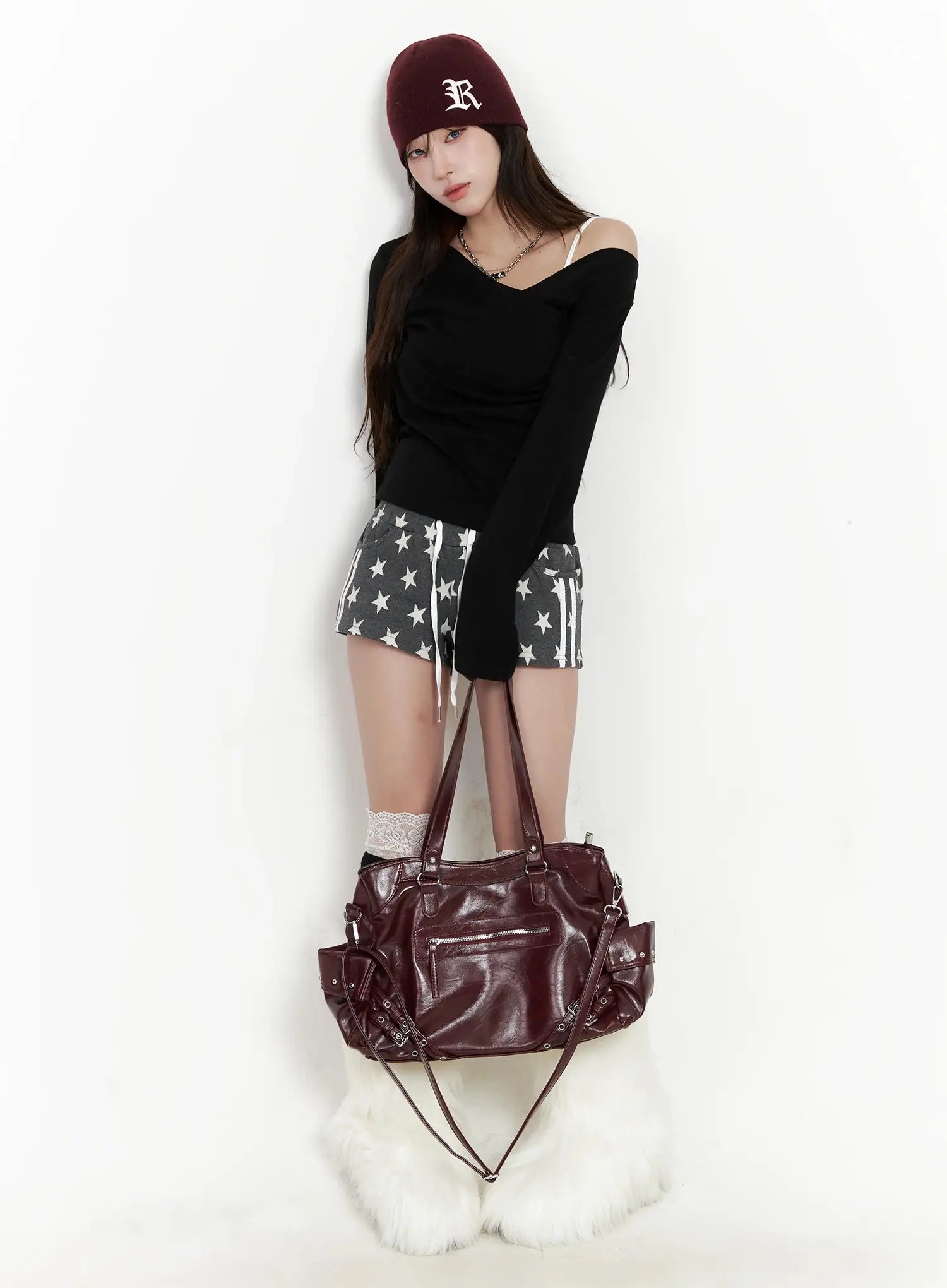 • Model is wearing size S/M and the color White.