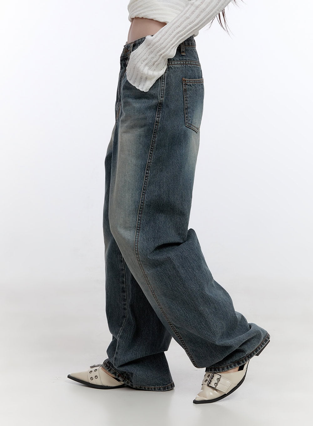 Style : Street, AcubiOccasion : Back to schoolDetail : StitchPrint : WashedMaterial : Cotton, DenimFit : Wide fitCotton100Color : BlueMade in KoreaModel Size