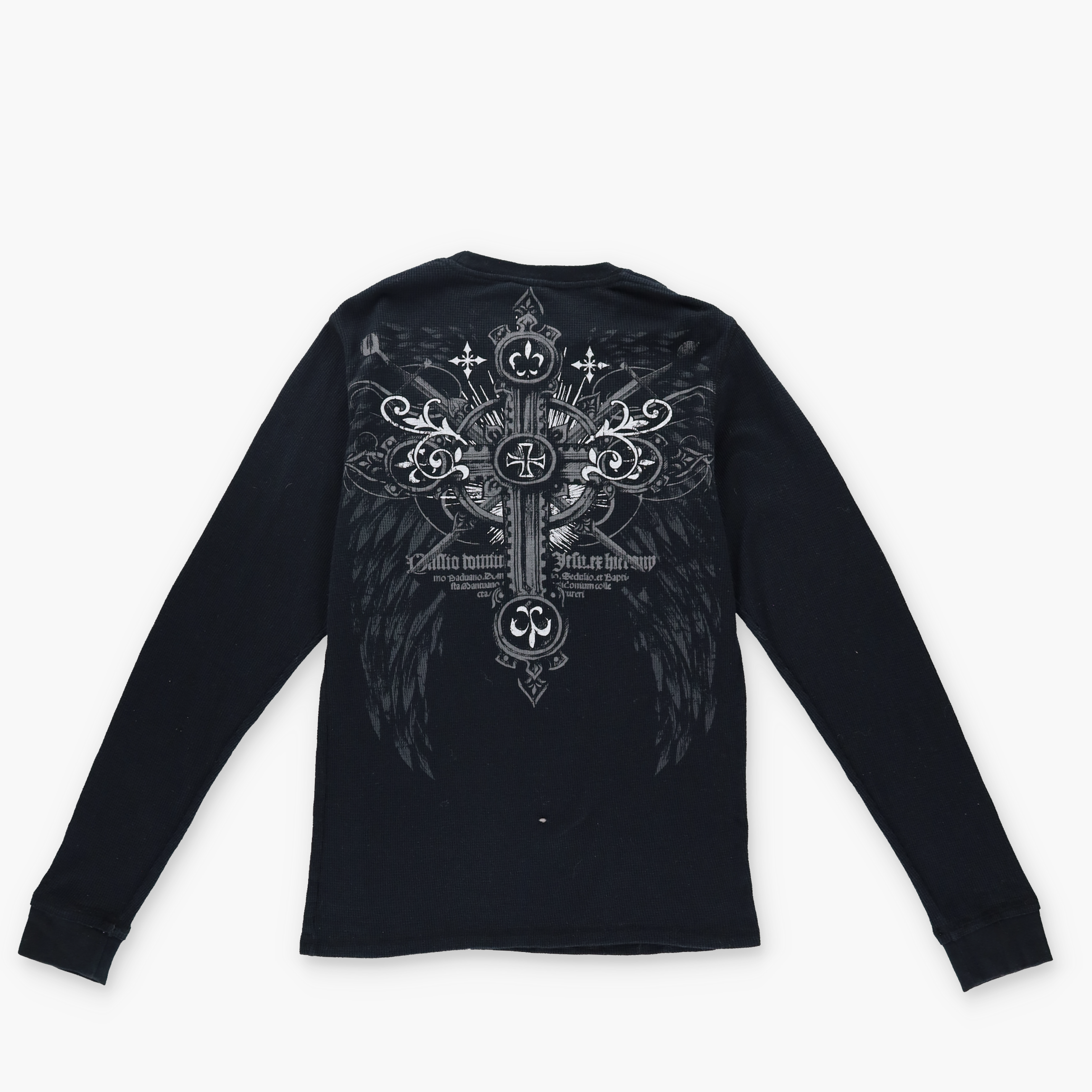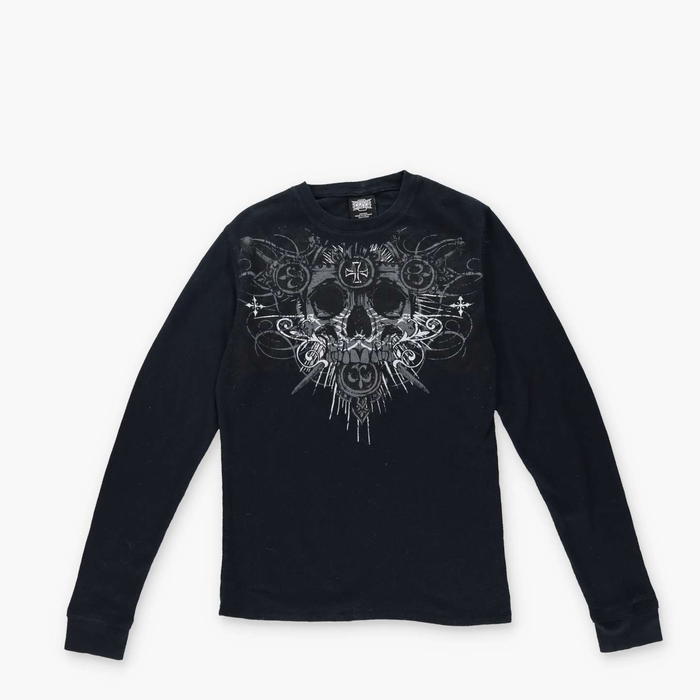 MMA ELITE Y2K Punk Grunge Skull Cross Graphic Black Thermal Long Sleeve (S)