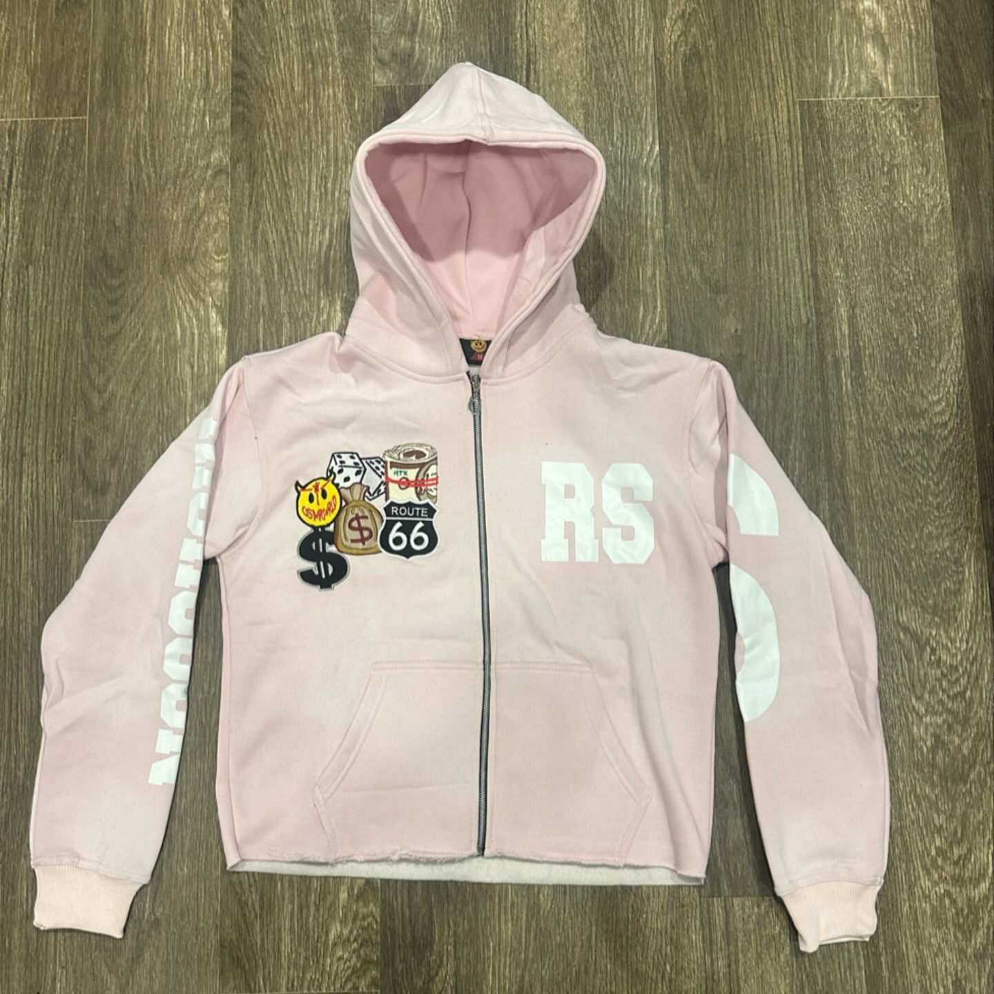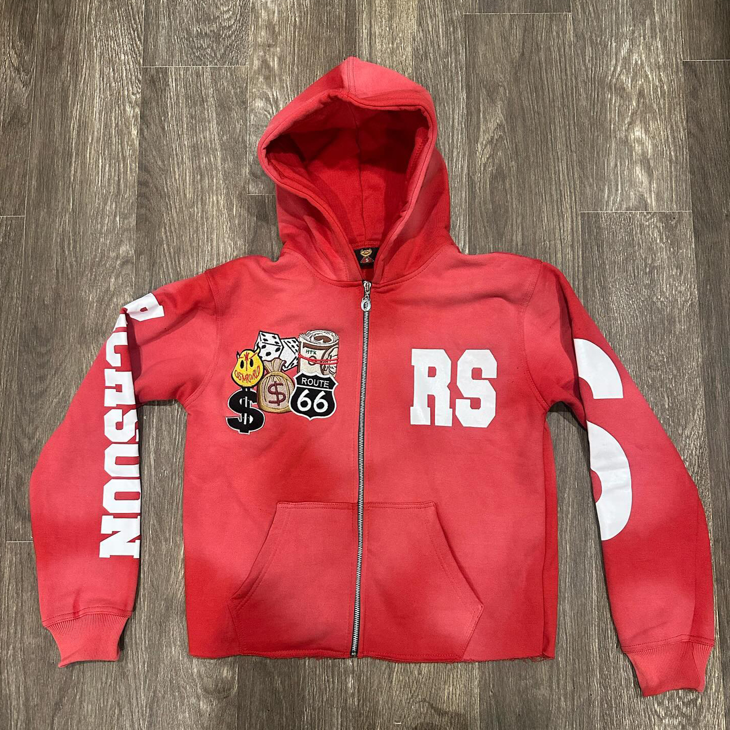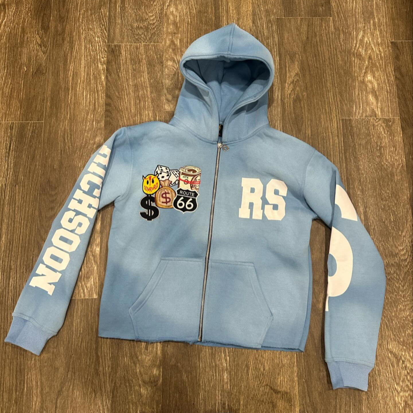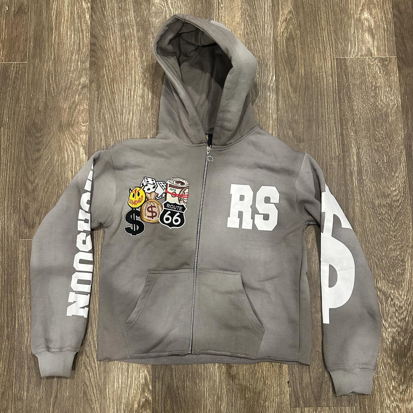 Personalized embroidered patch zip-up hoodie