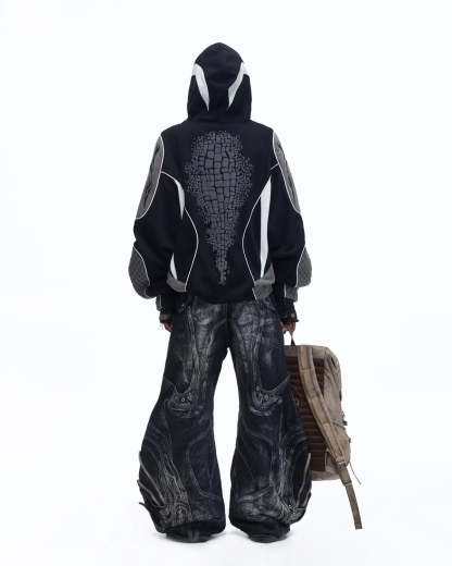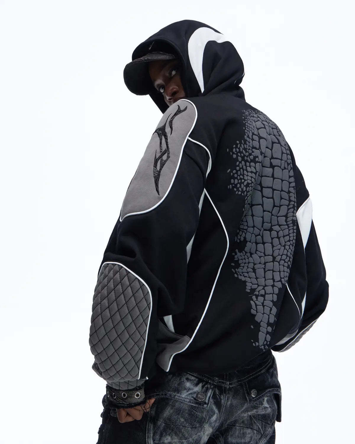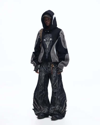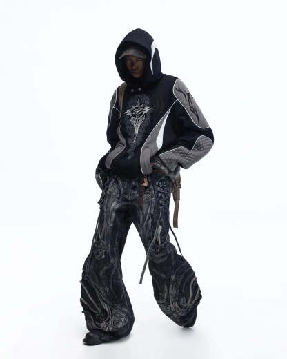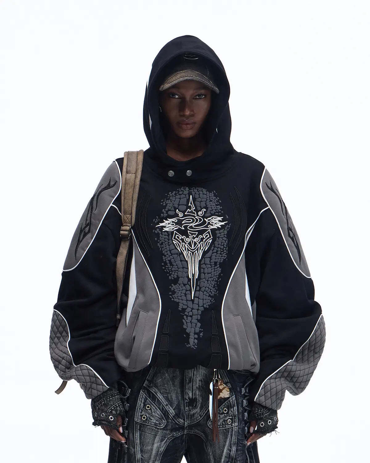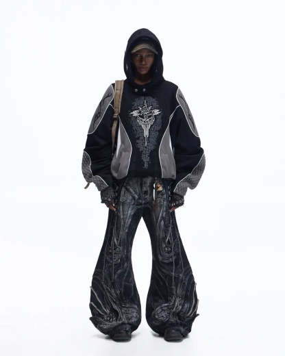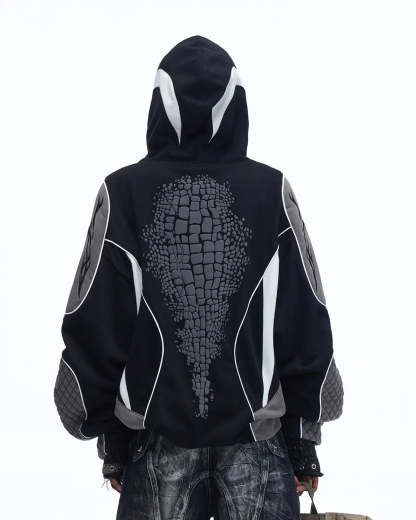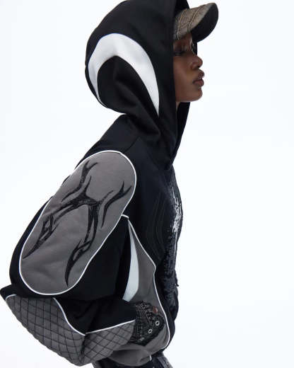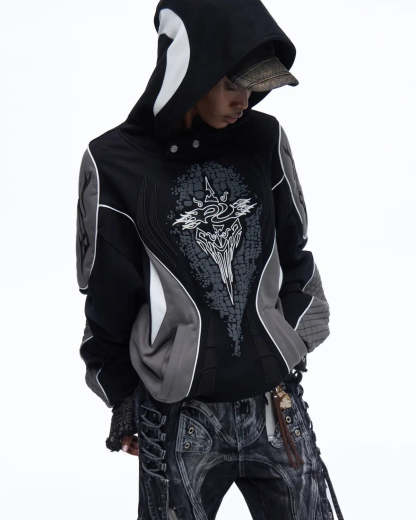 Personsoul Totem Color-Block Racing Hoodie In Black