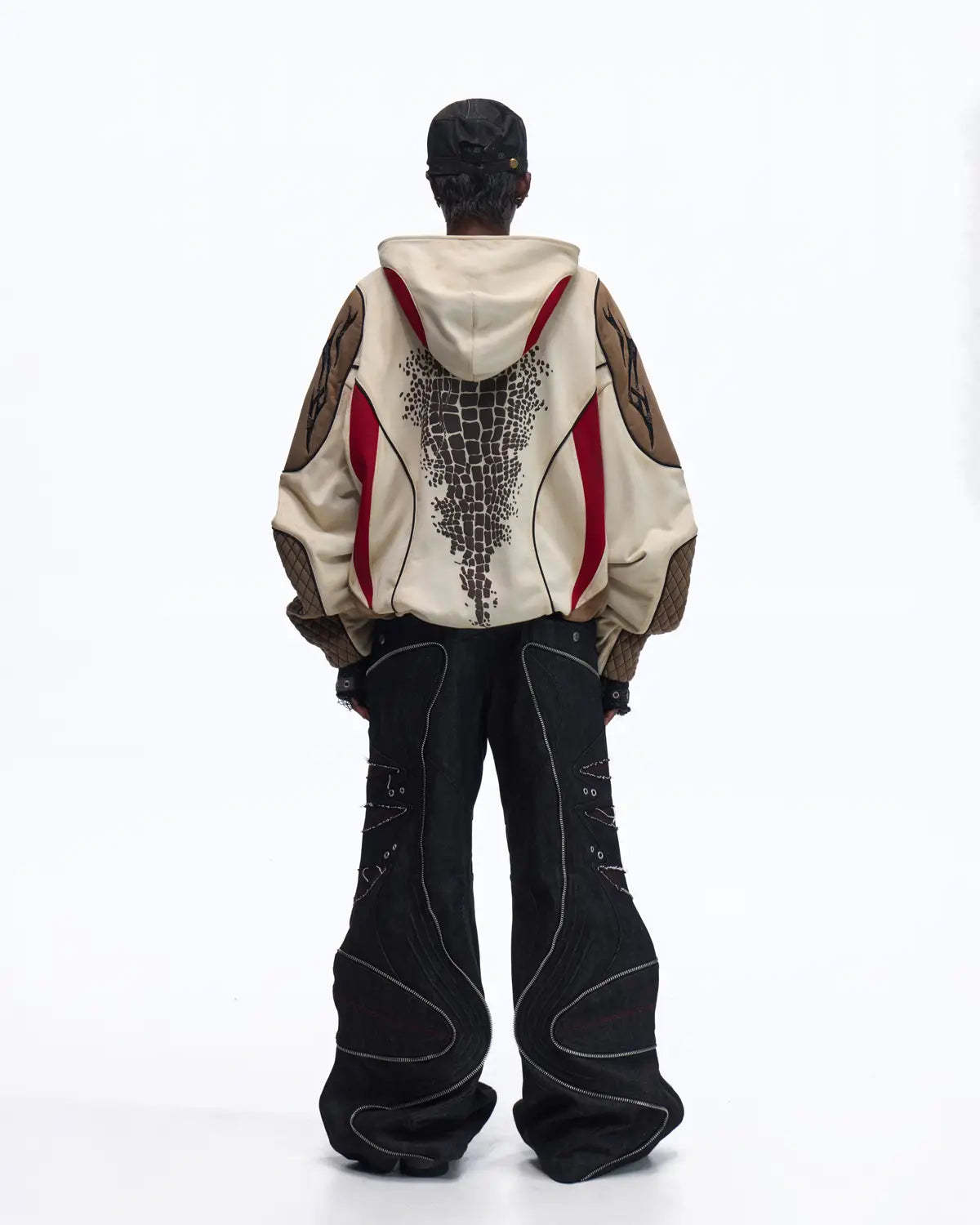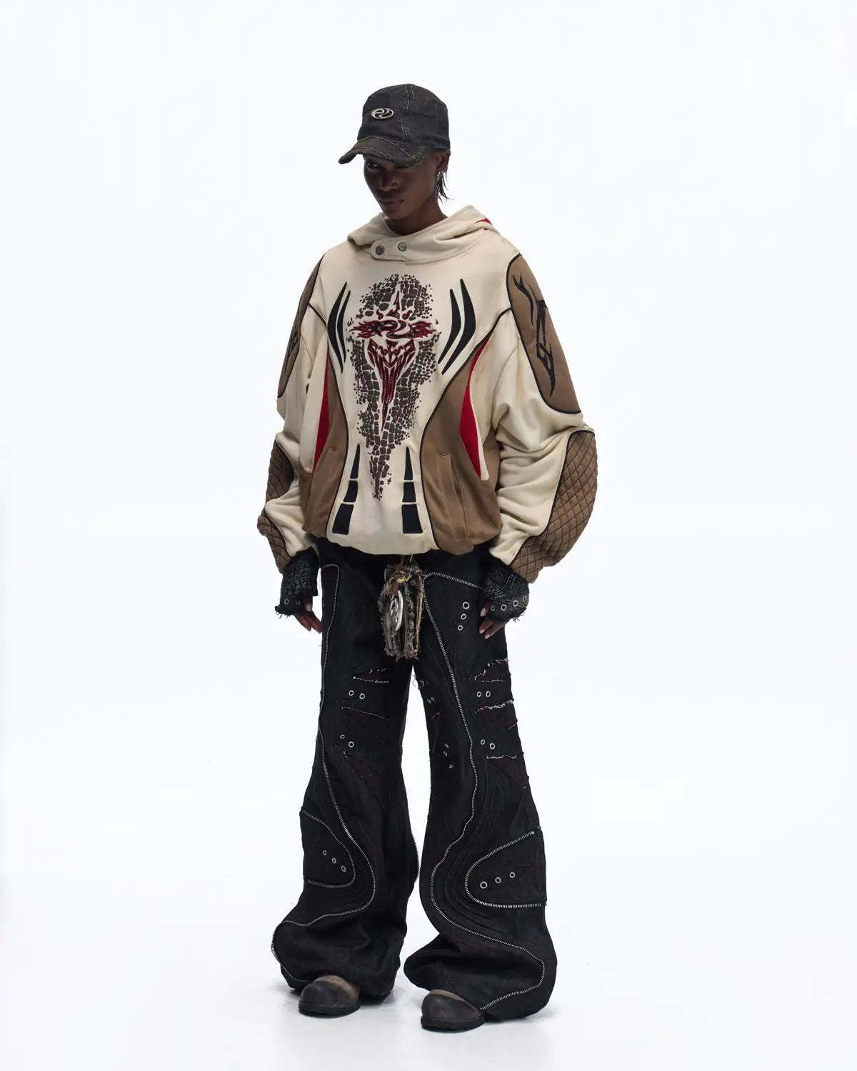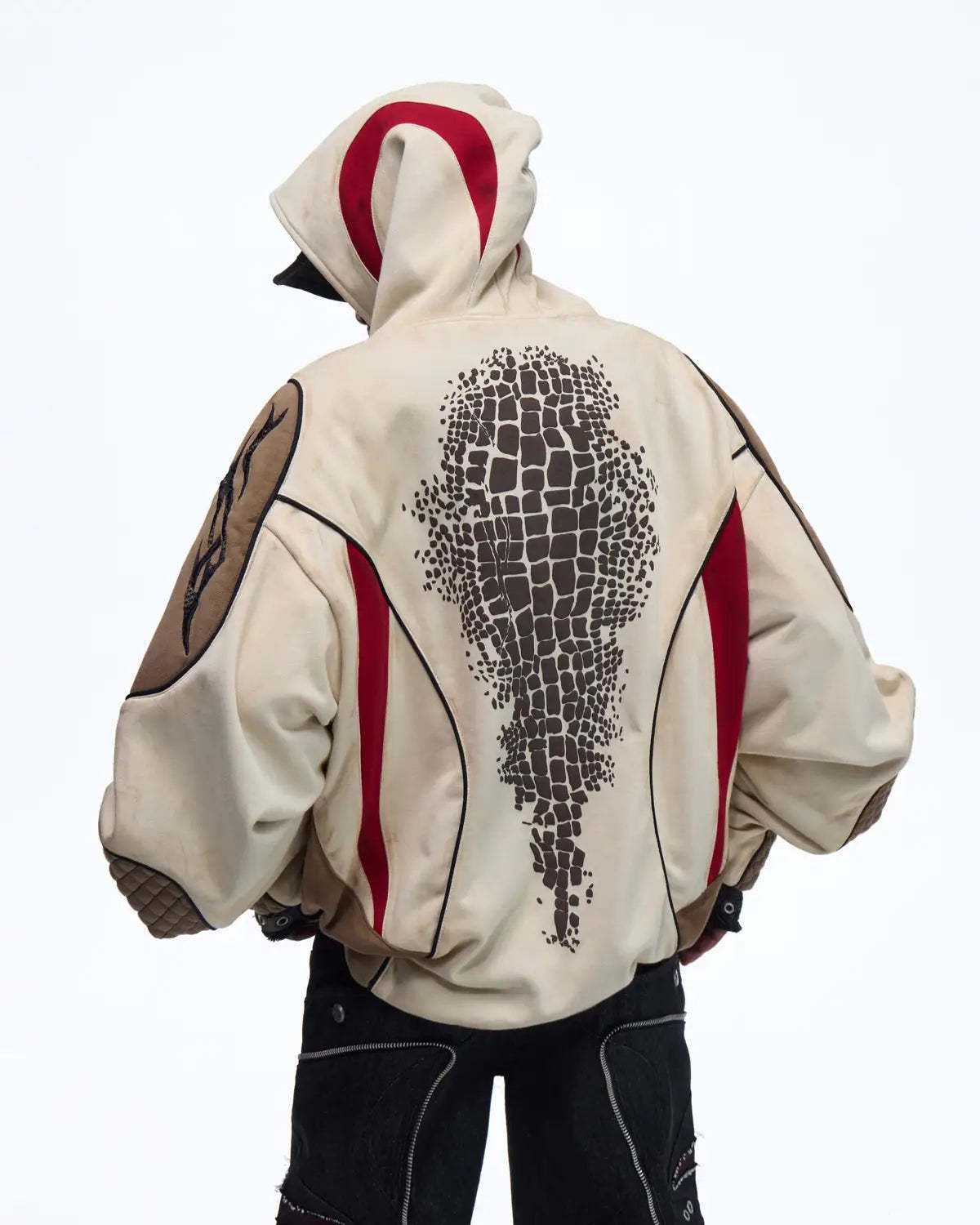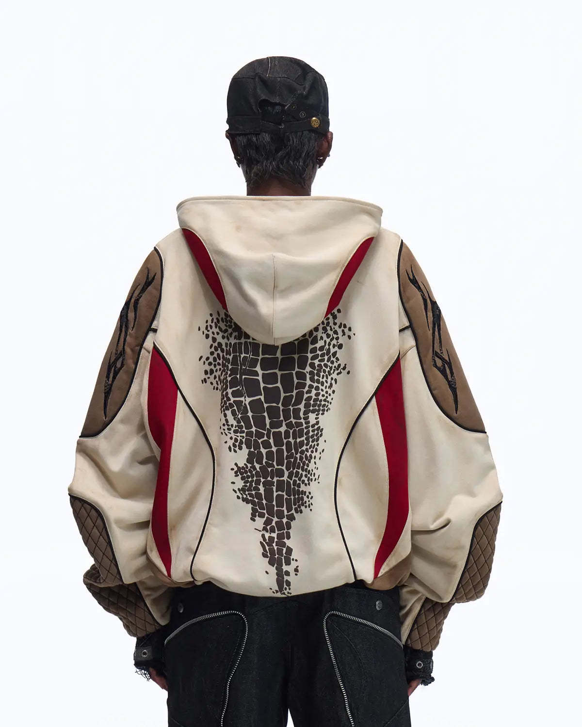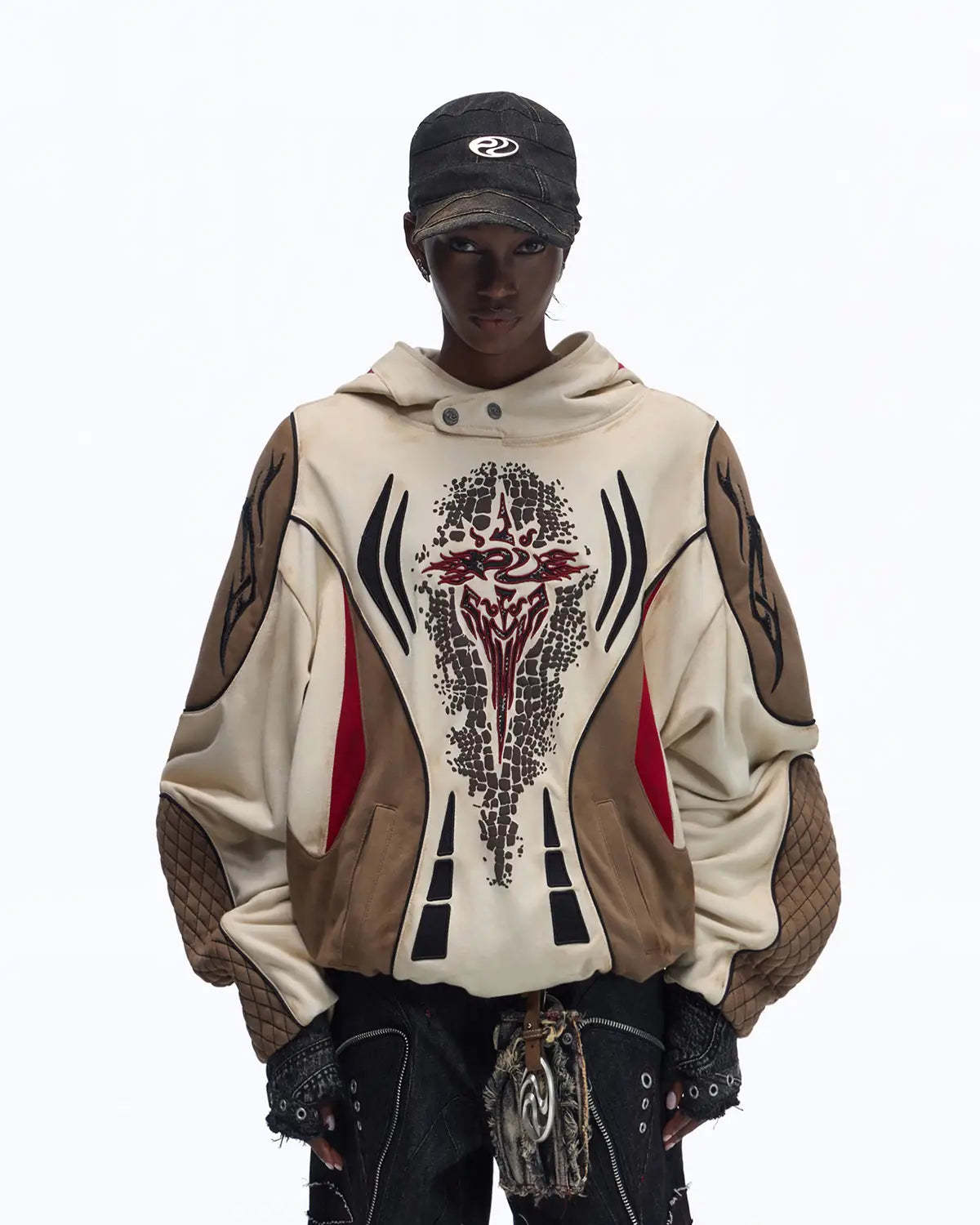 Personsoul Totem Color-Block Racing Hoodie In Brown