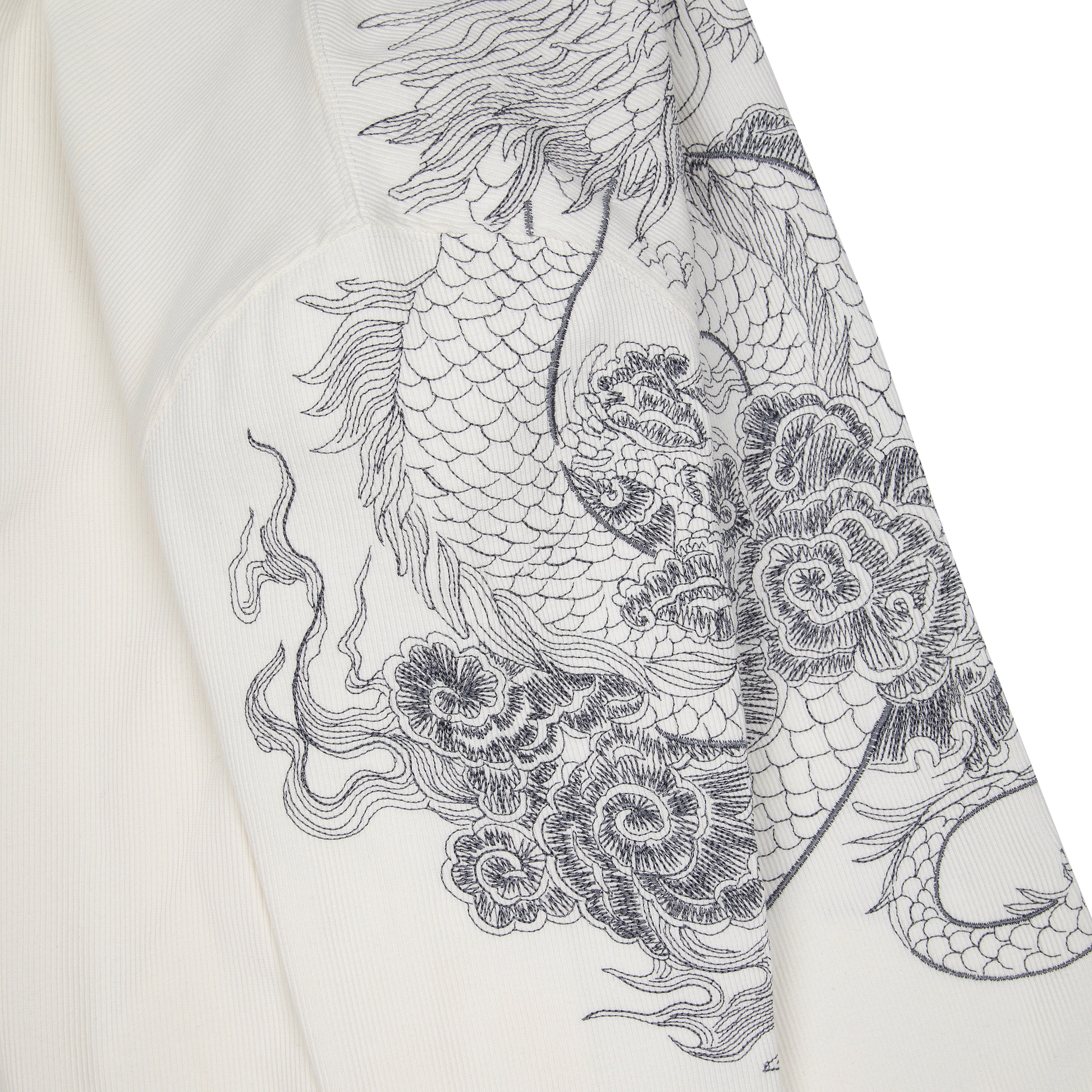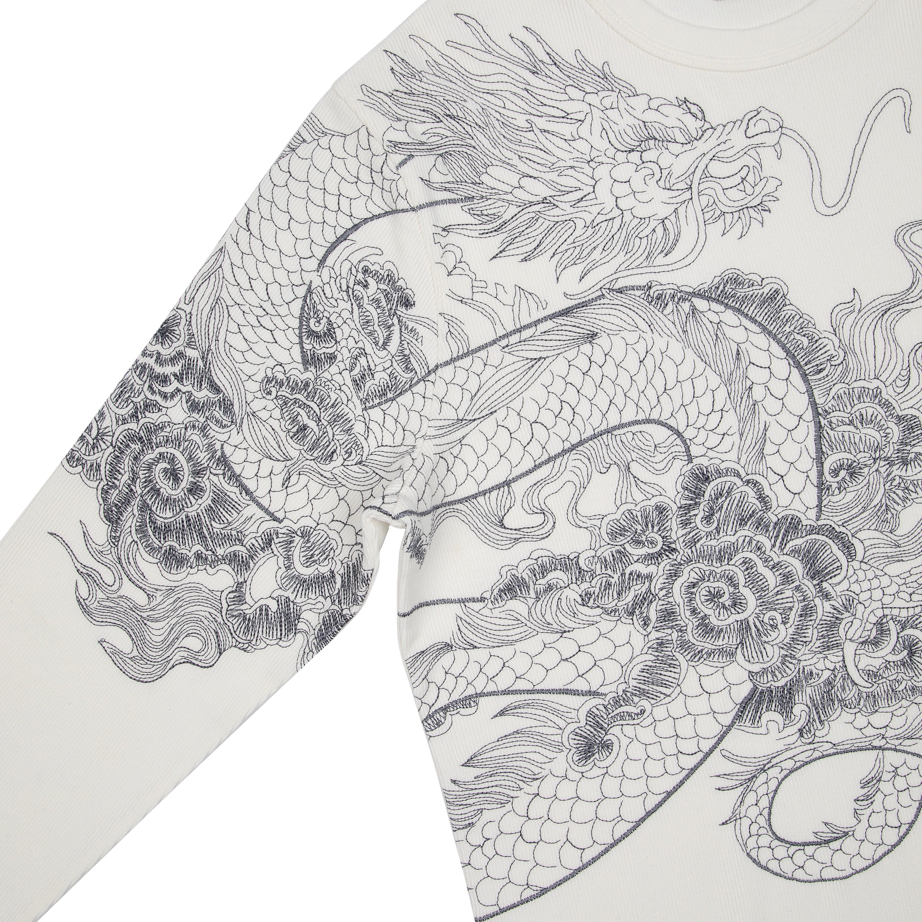 400gsm ribbed cotton / 97% cotton 3% elastane / embroidery on front and sleeve / fits true to size