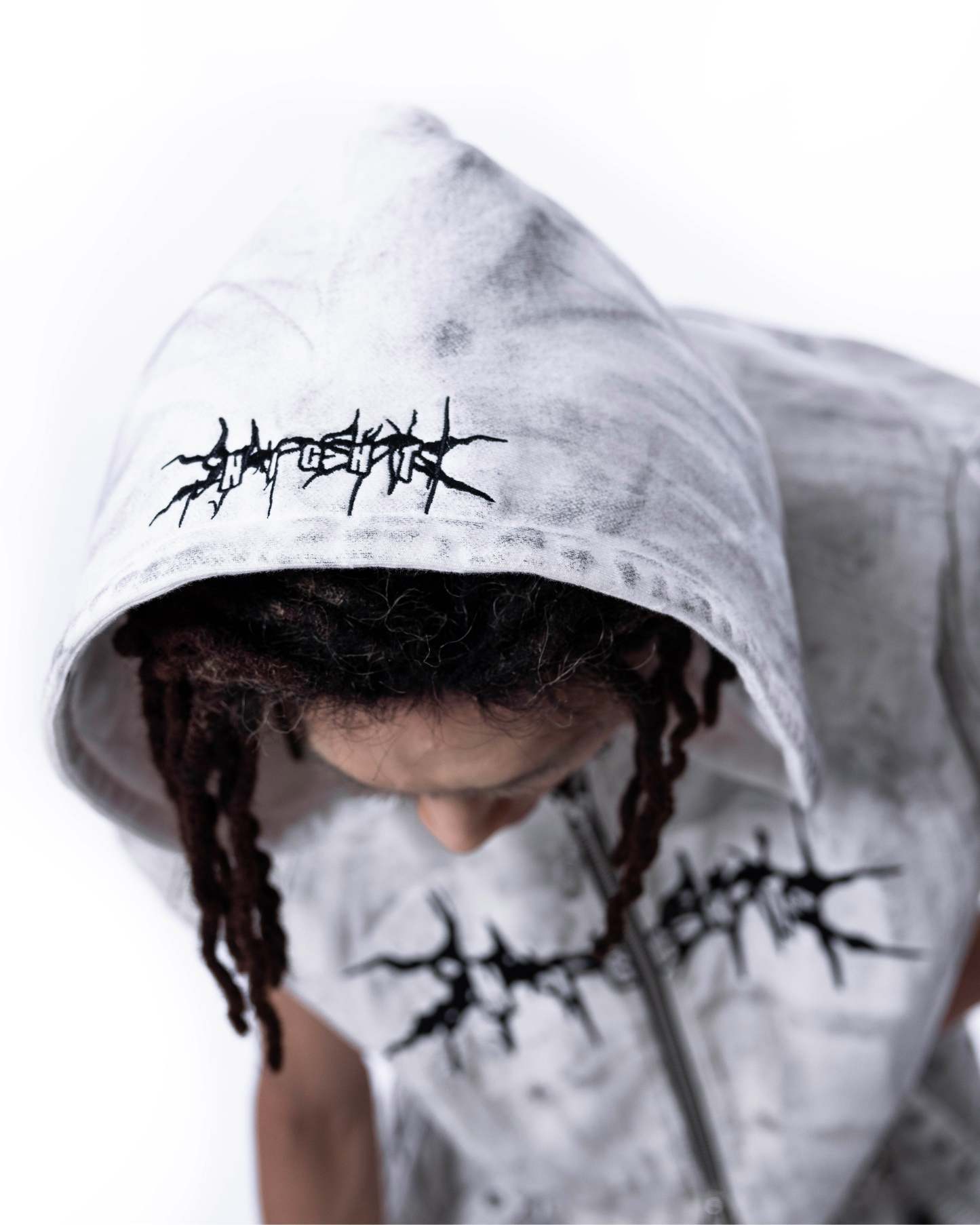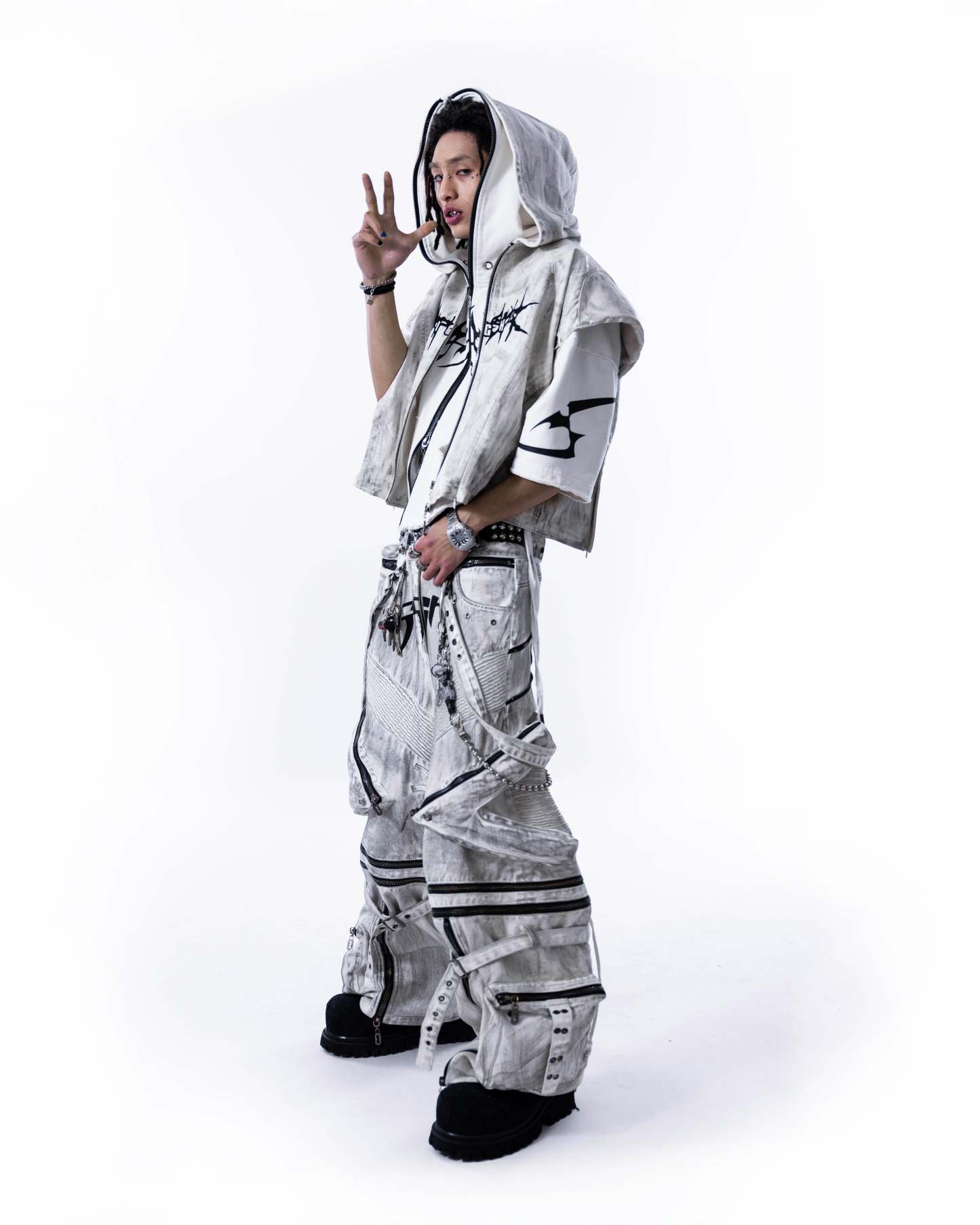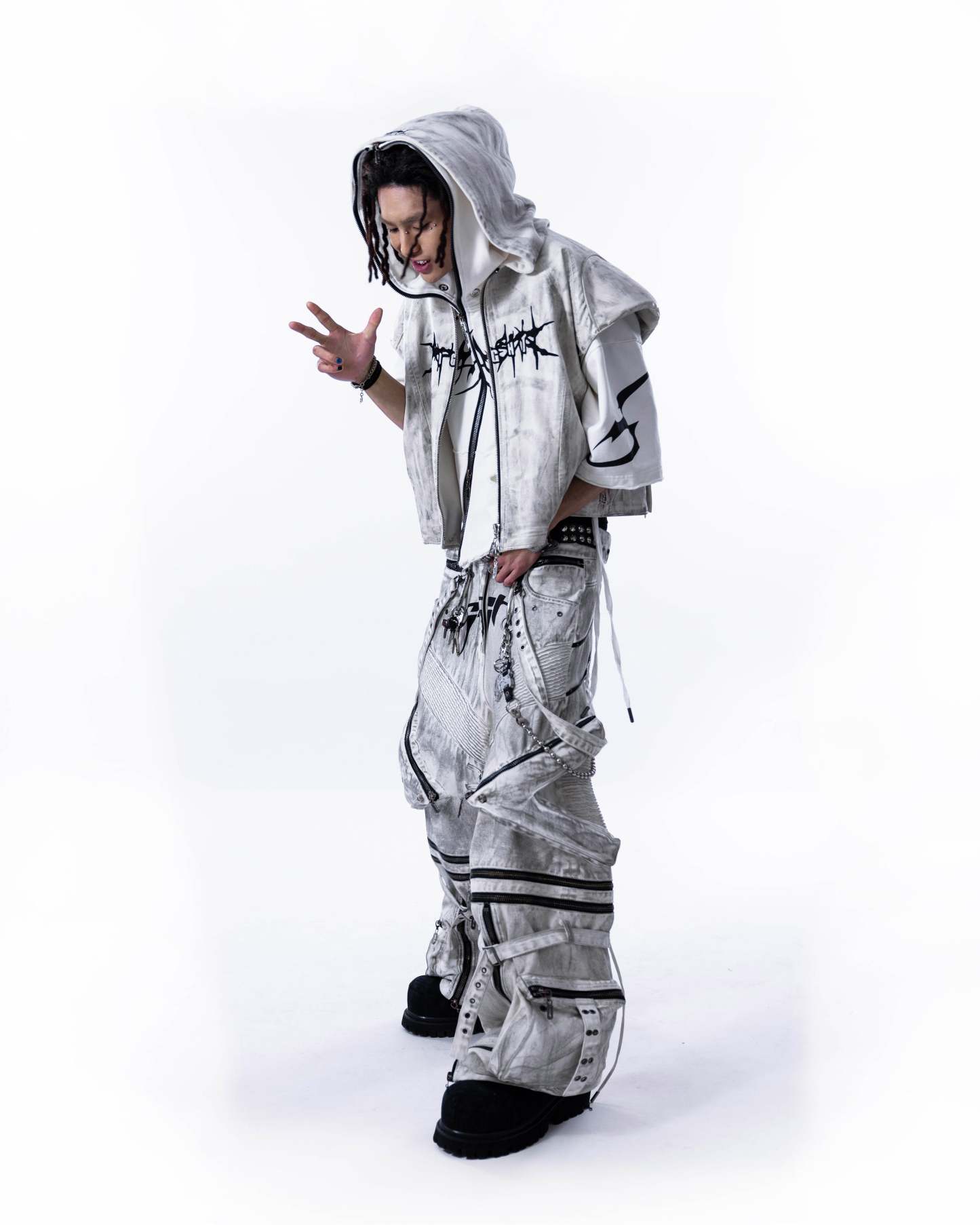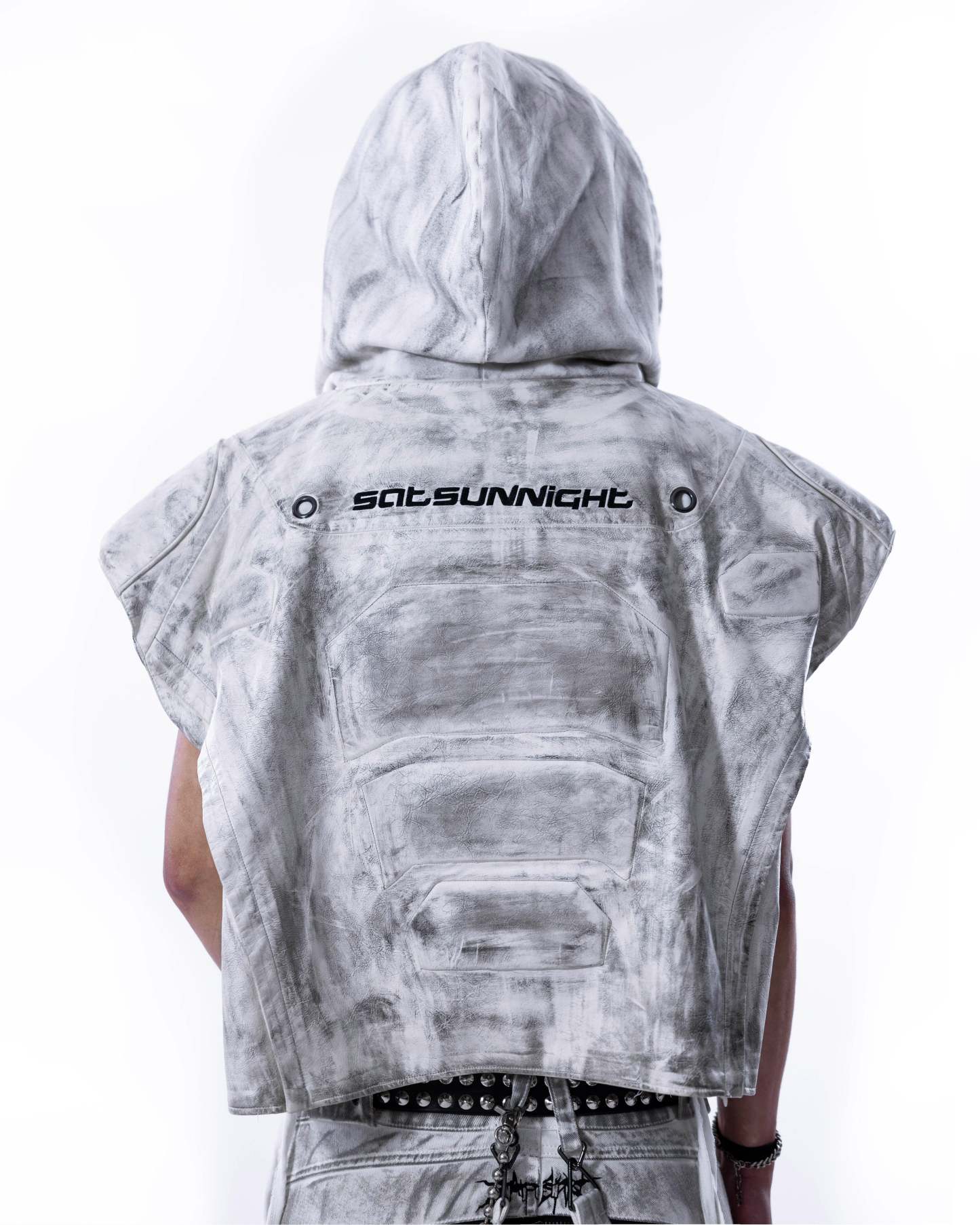 <IT's N0T BLACK & WHITE> LEATHER VEST - POLLUTED WHITE