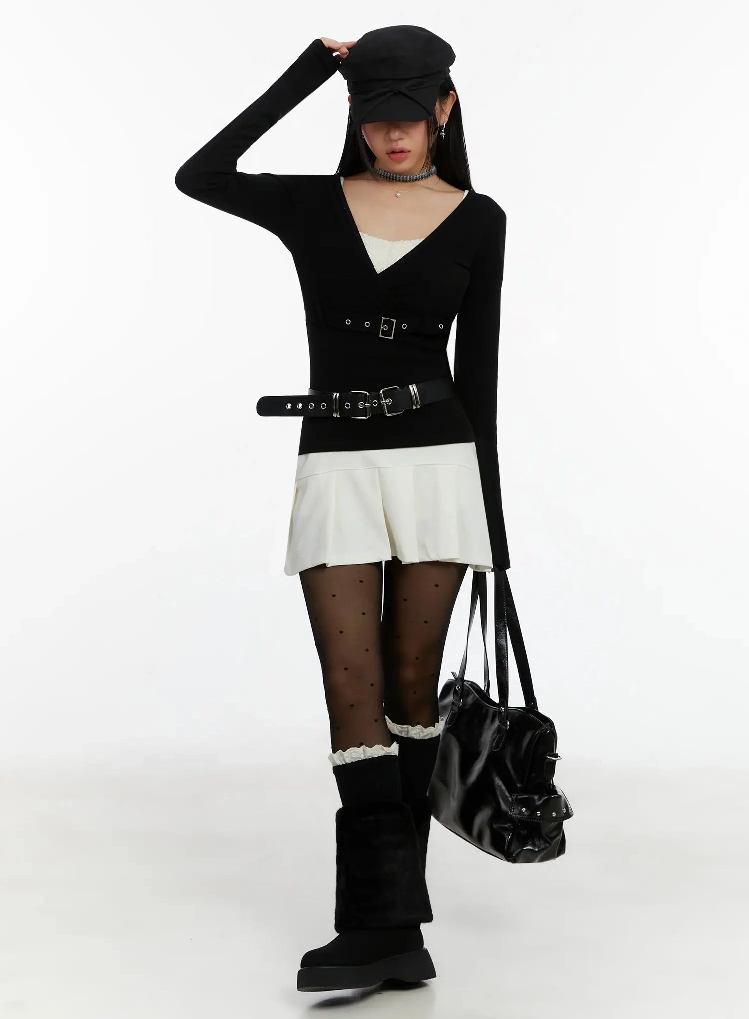 • Model is wearing size One Size and the color Black.