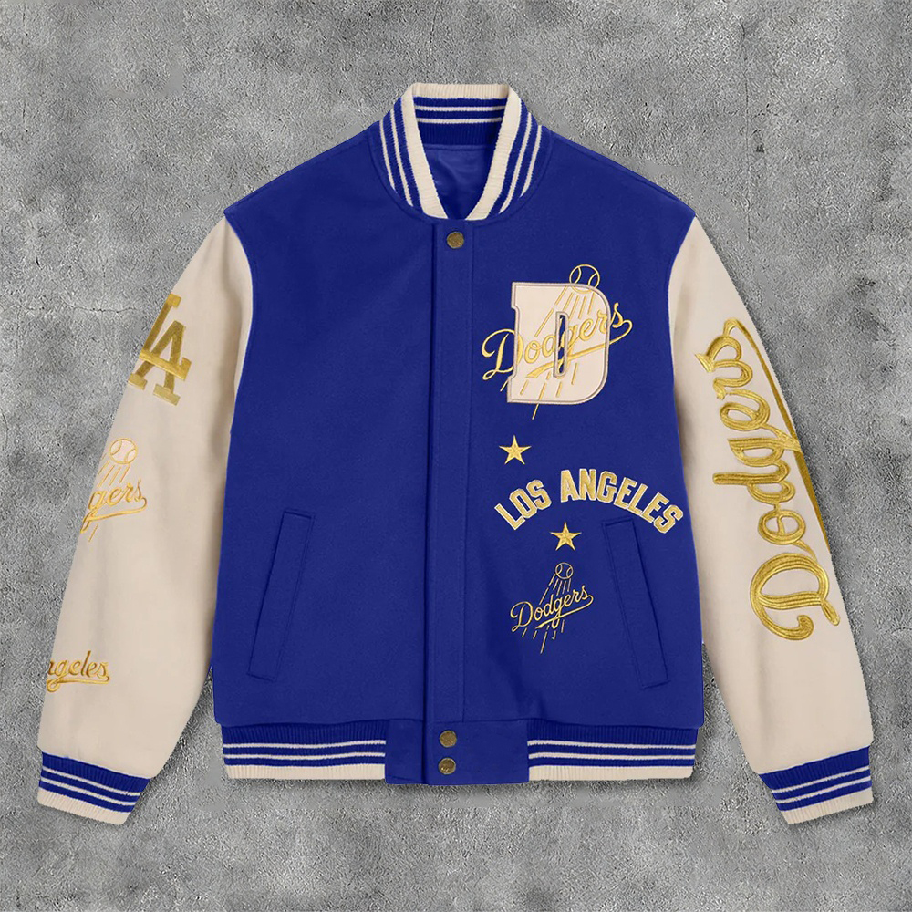 Fashionable Los Angeles Print Color Block Baseball Jacket