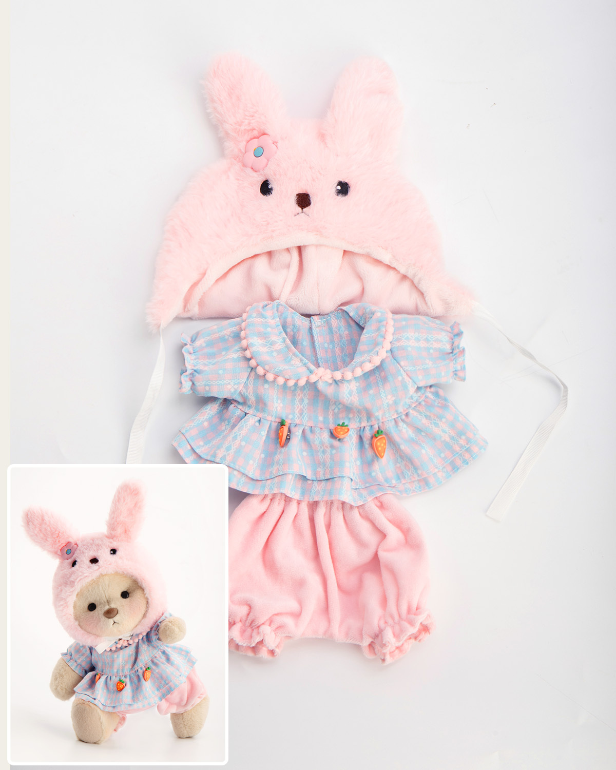 Pink Bunny Hat Carrot Set (Outfit Only) | 12 Inches Teddy Bear Clothes