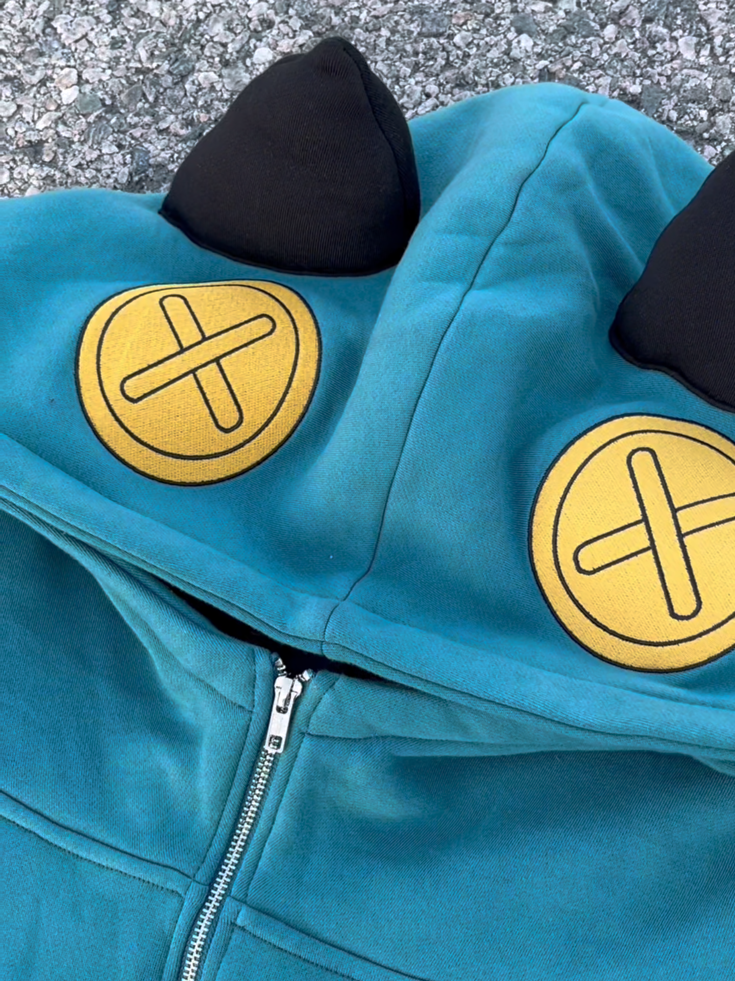 Embroidered hood.