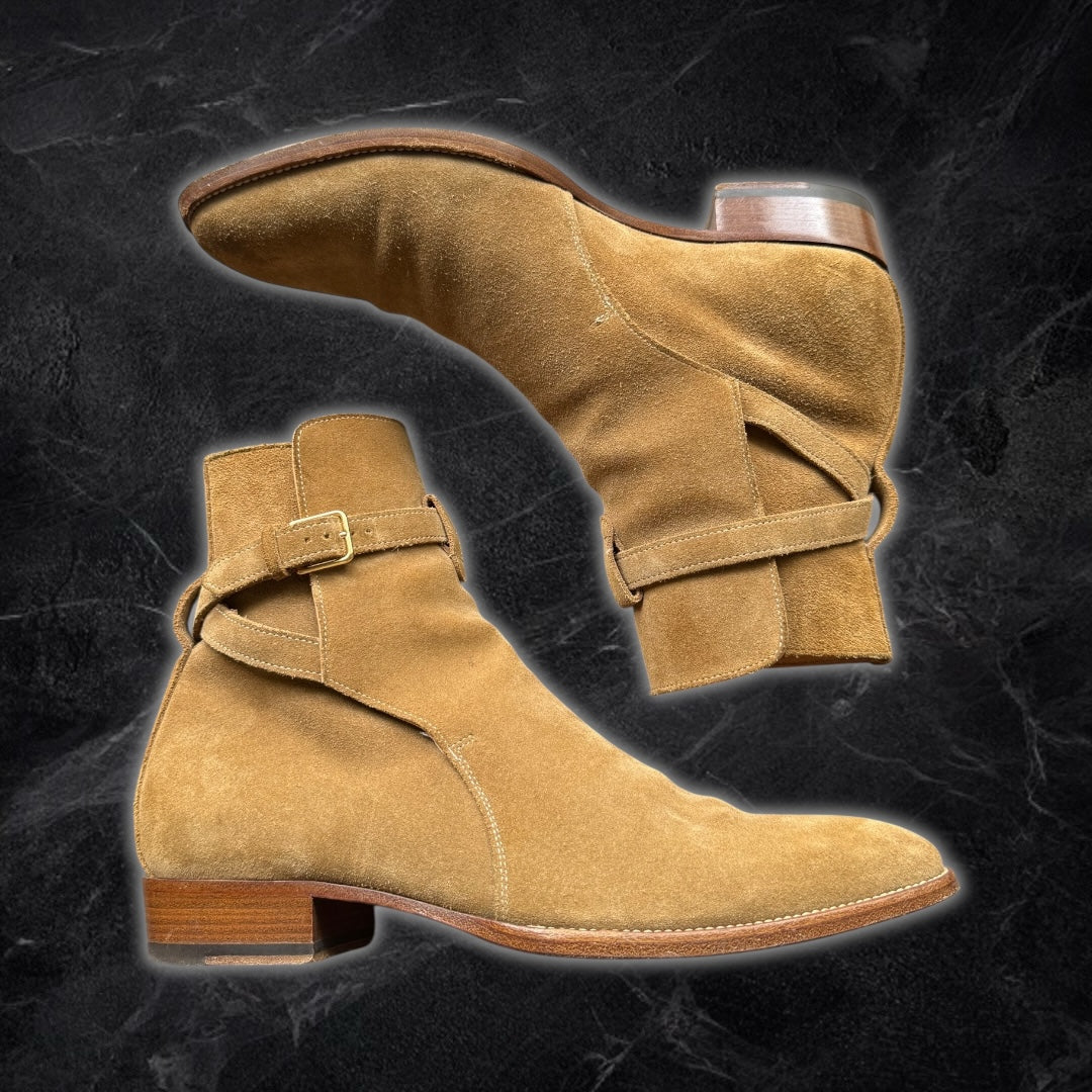 Yves Saint Laurent “Wyatt” boots (camel suede)