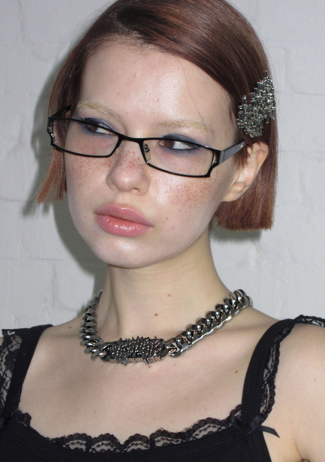 NOCTURNAL RHINESTONE BOW BABY TEE BLACK