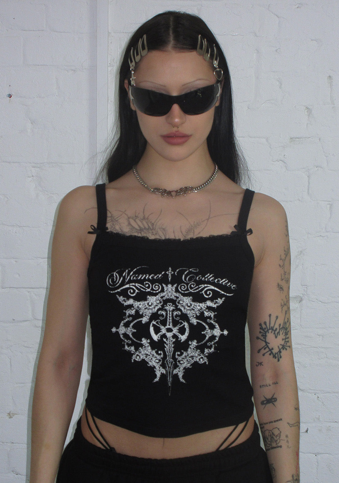 NOCTURNAL LACE BACK CAMI TANK BLACK