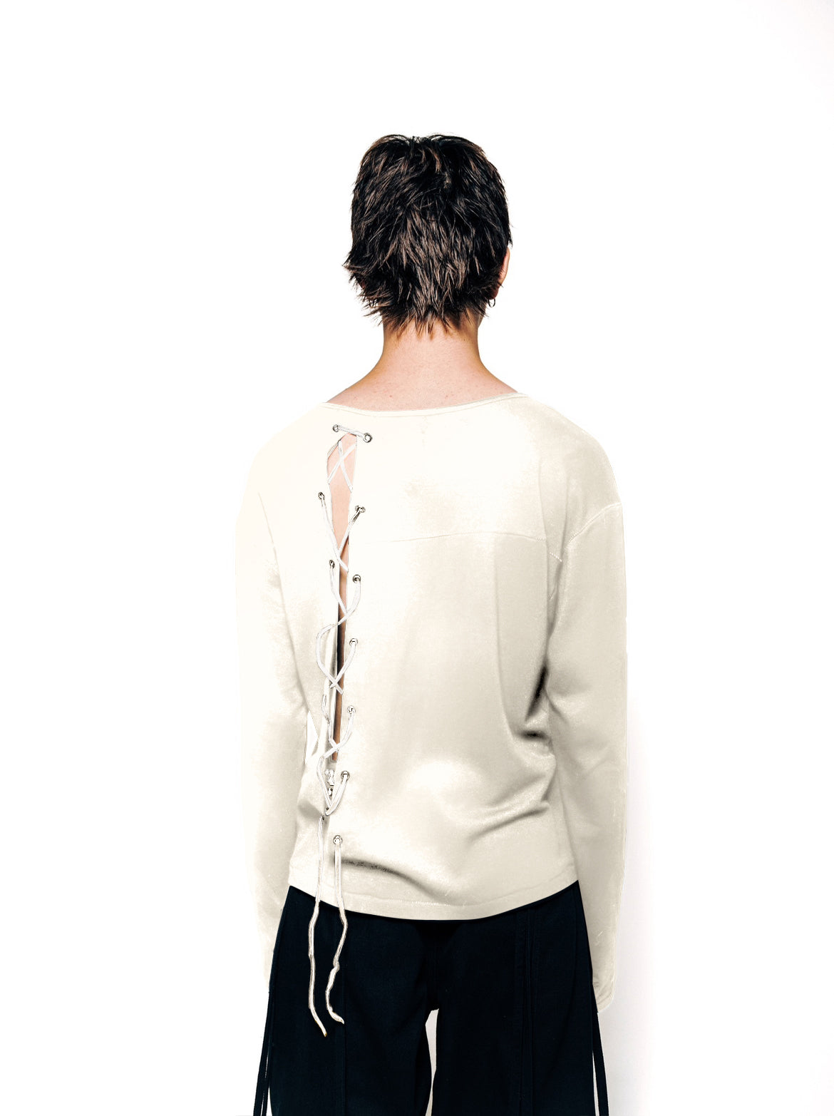 100% COTTON LONG SLEEVE. DESIGNED WITH LEATHER STRING CLOSURES AT THE CHEST, CREATING A RAW LACED DETAIL THAT BALANCES UTILITY AND EDGE. THE FABRIC IS BREATHABLE YET WARM, MAKING IT IDEAL FOR TRANSITIONAL WEATHER.