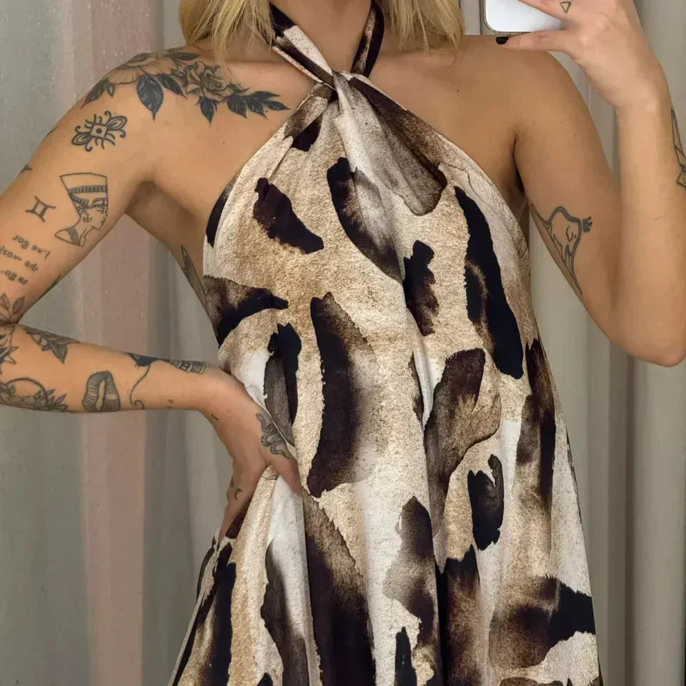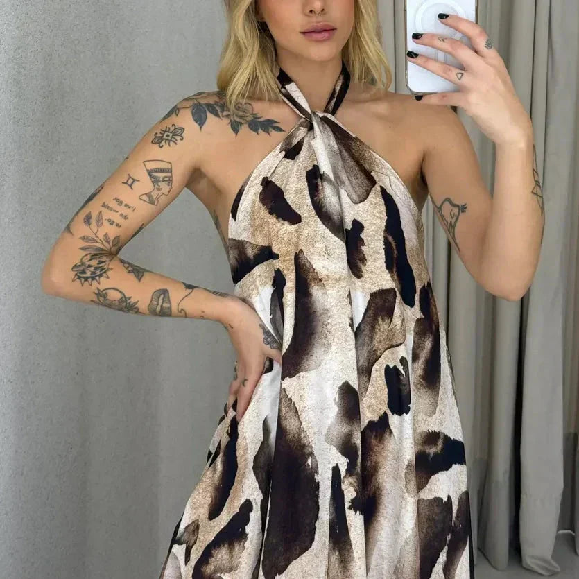 ⏳Time-limited Special⏰Women's Printed Halter Neck Maxi Dress