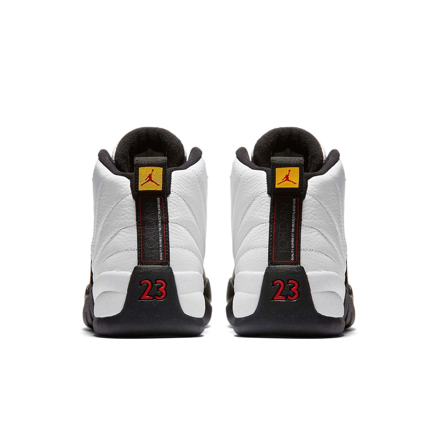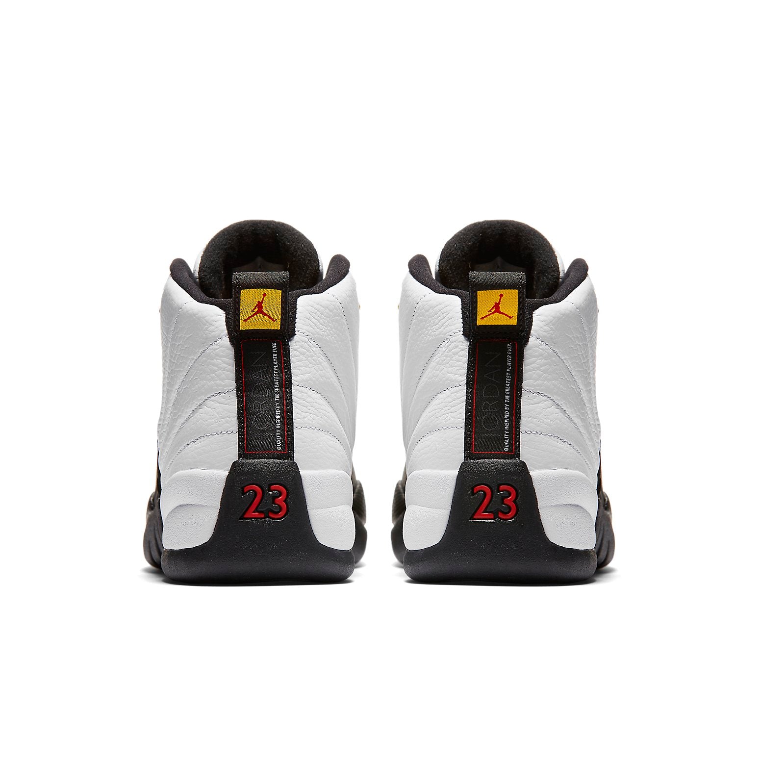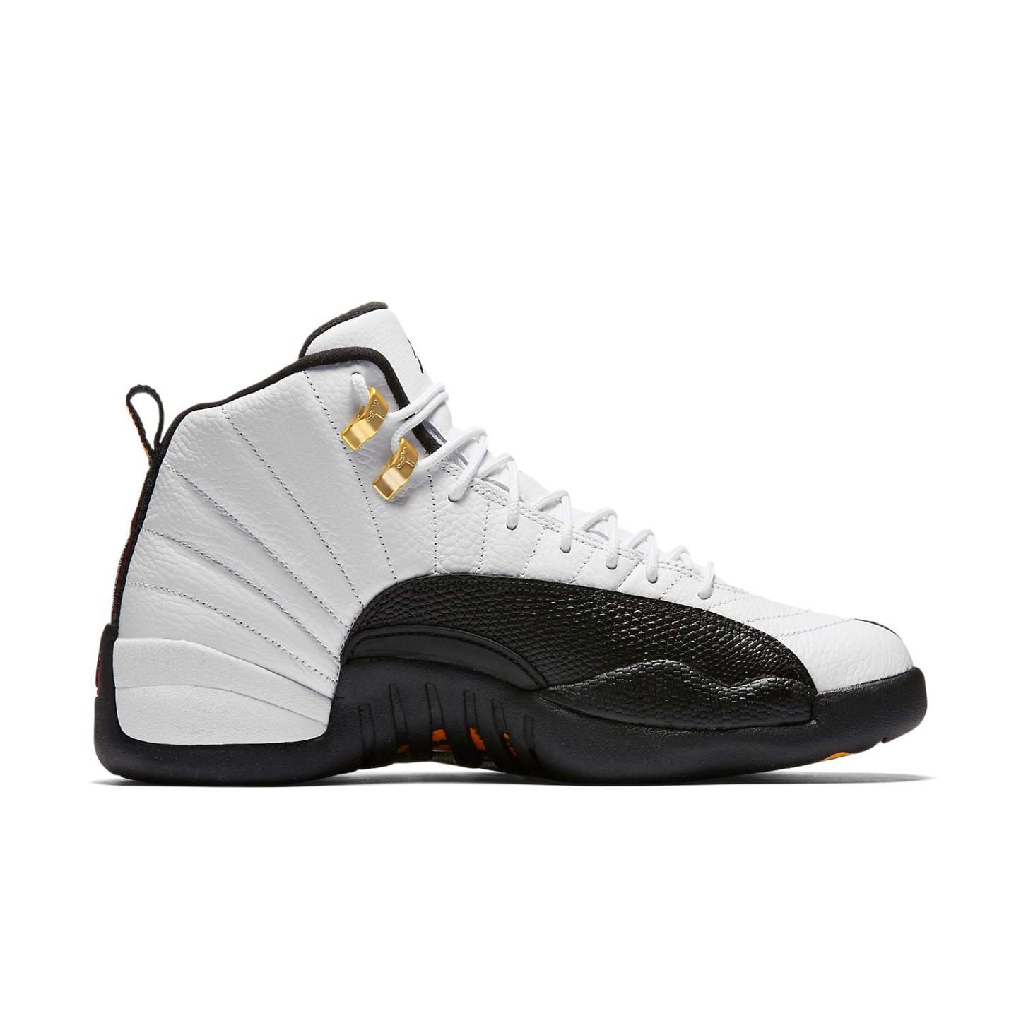 The Air Jordan 12 Retro 'Taxi' 2013 is a true classic sneaker. First released in 1996, the Air Jordan 12 Retro 'Taxi' 2013 is based on the OG white/black colorway worn by Michael Jordan himself during the 1996-97 NBA regular season. The sneaker features beautiful metallic gold eyelets and a black outsole with a carbon fiber shank that references the black and yellow of NYC Taxi cabs. The 'Taxi' was first retroed in 2008 as part of Nike's Countdown Collection, and was also given the low-top treatment in 2011. If you're a true sneakerhead, the Air Jordan 12 Retro 'Taxi' 2013 is a must-have in your collection!