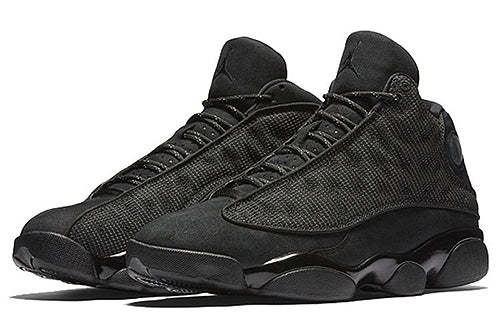 The Air Jordan 13 Retro 'Black Cat' is a sleek and stylish sneaker that is sure to turn heads. Its monochromatic black finish plays off one of Michael Jordan's many nicknames, and its holographic cat eye and reflective detailing add an extra touch of pizzazz. The glossy finish on the Phylon midsole is the perfect finishing touch, and the sneaker's signature panther paw outsole provides maximum grip.