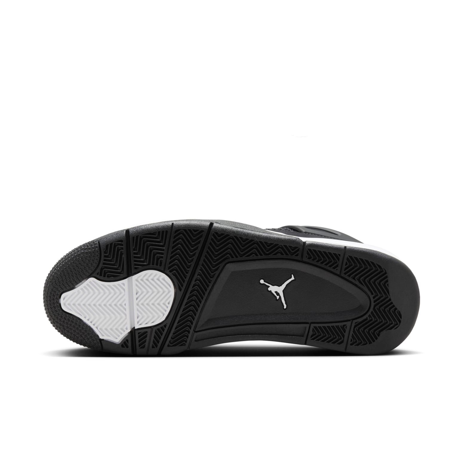 Relive the classic with the Air Jordan 4 'White Thunder'. This iconic colorway returns with a black suede upper contrasted by crisp white accents. The iconic mesh netting and signature Jumpman branding complete the retro look. Offering comfort and style, this Jordan 4 is a must-have for sneakerheads and basketball enthusiasts alike.