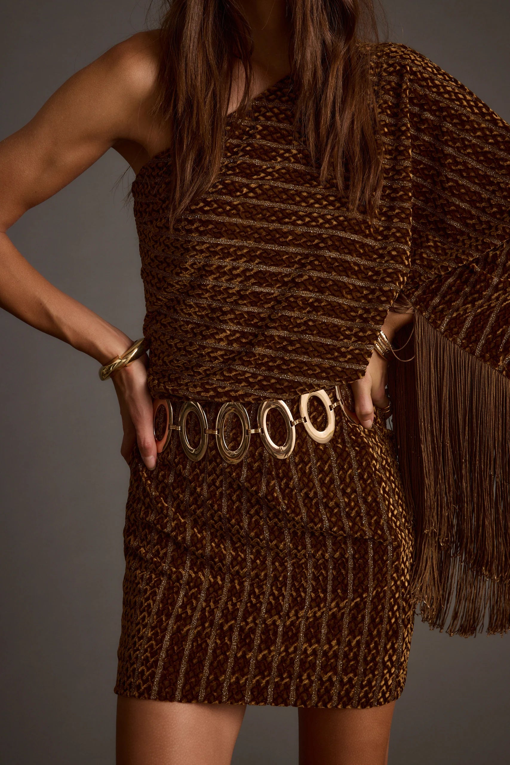 Amber One-Shoulder Velvet Tassel Mini Dress