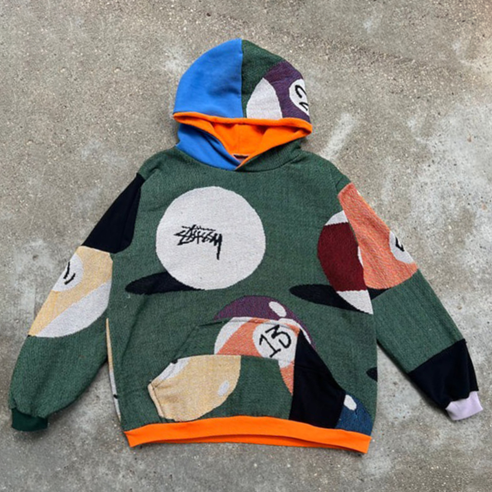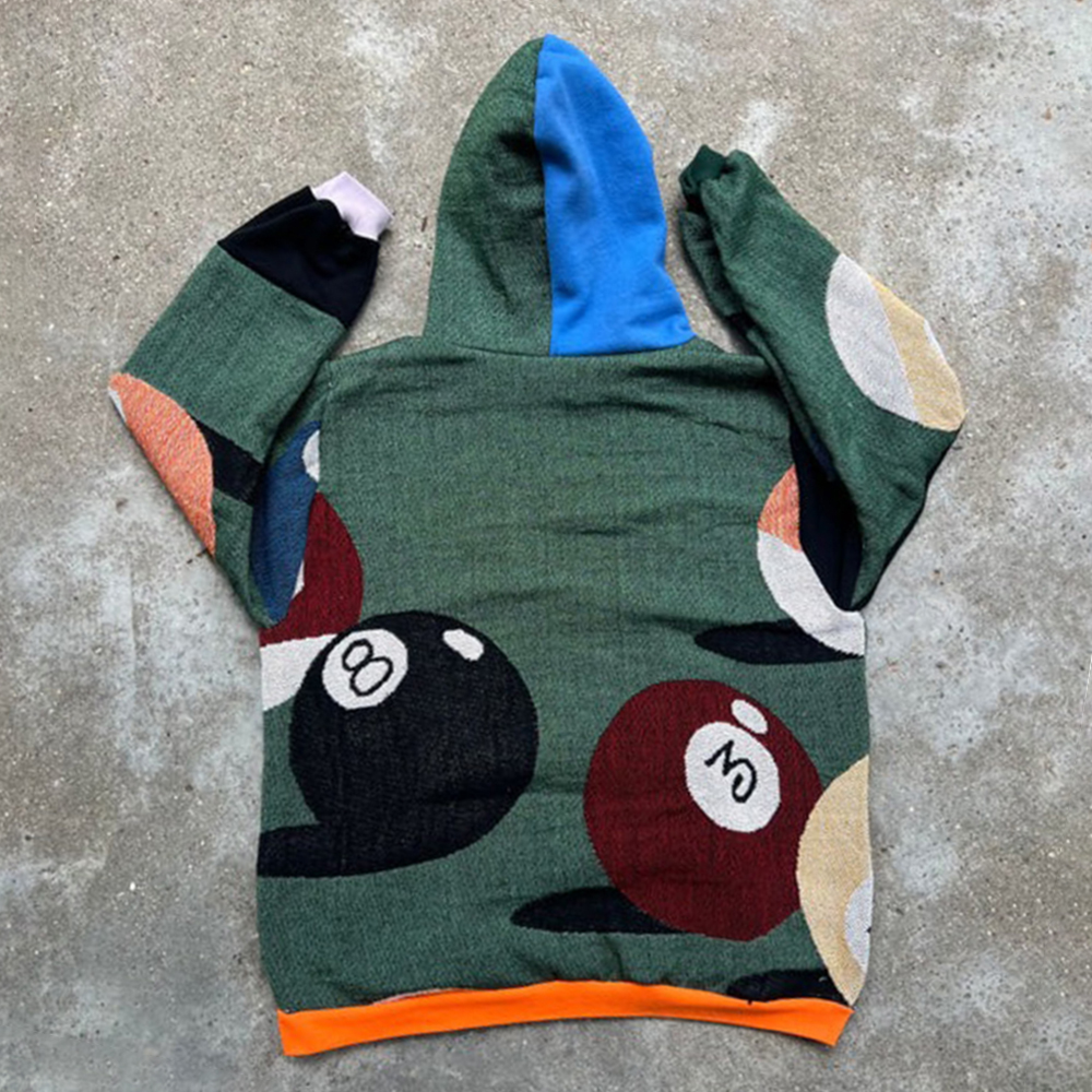 Billiards Contrast Color Print Long Sleeve Hoodies