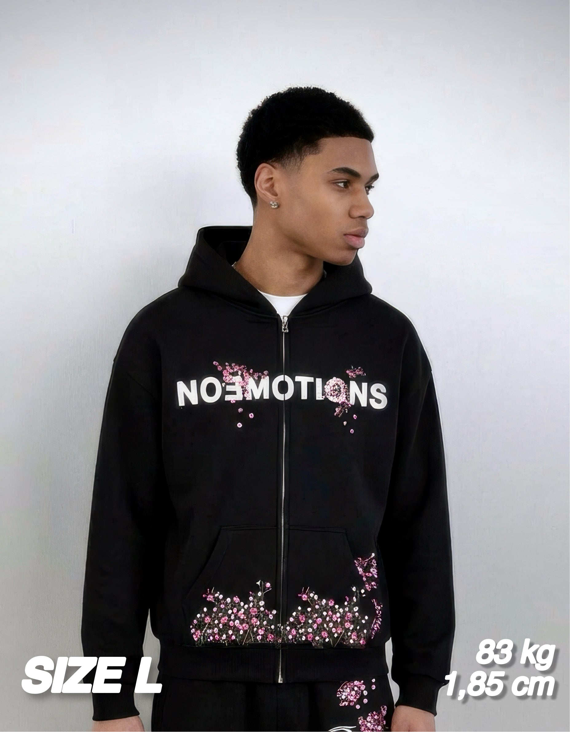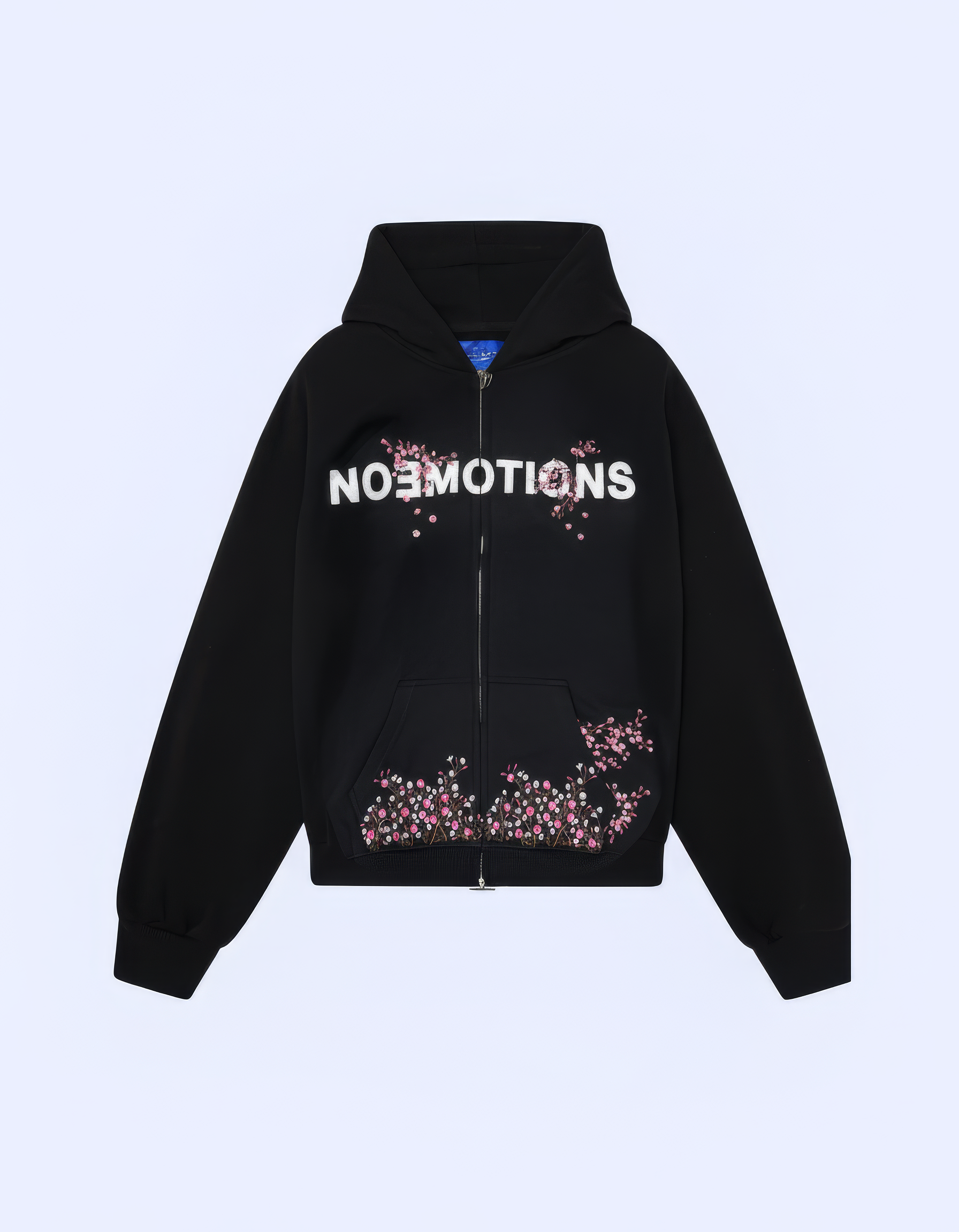 Double Zip Featuring. Custom Zip Zeadings. Boxy Fit. Seven Apliqué Pink Stars. Front Logo is Full Embroidery. Contrast Stiching on pocket and sleeves.