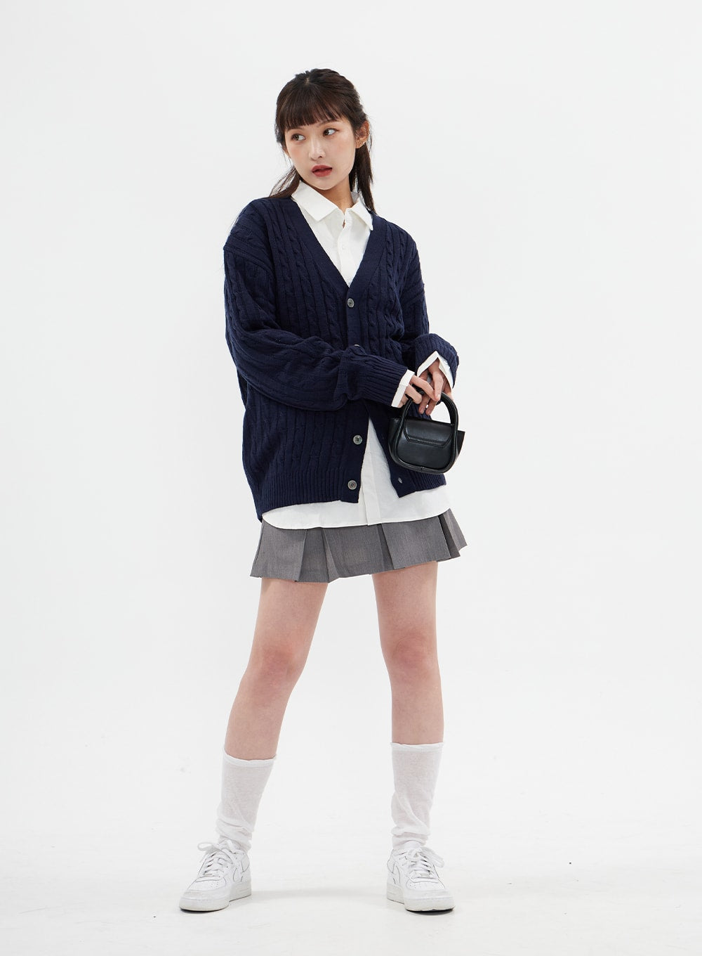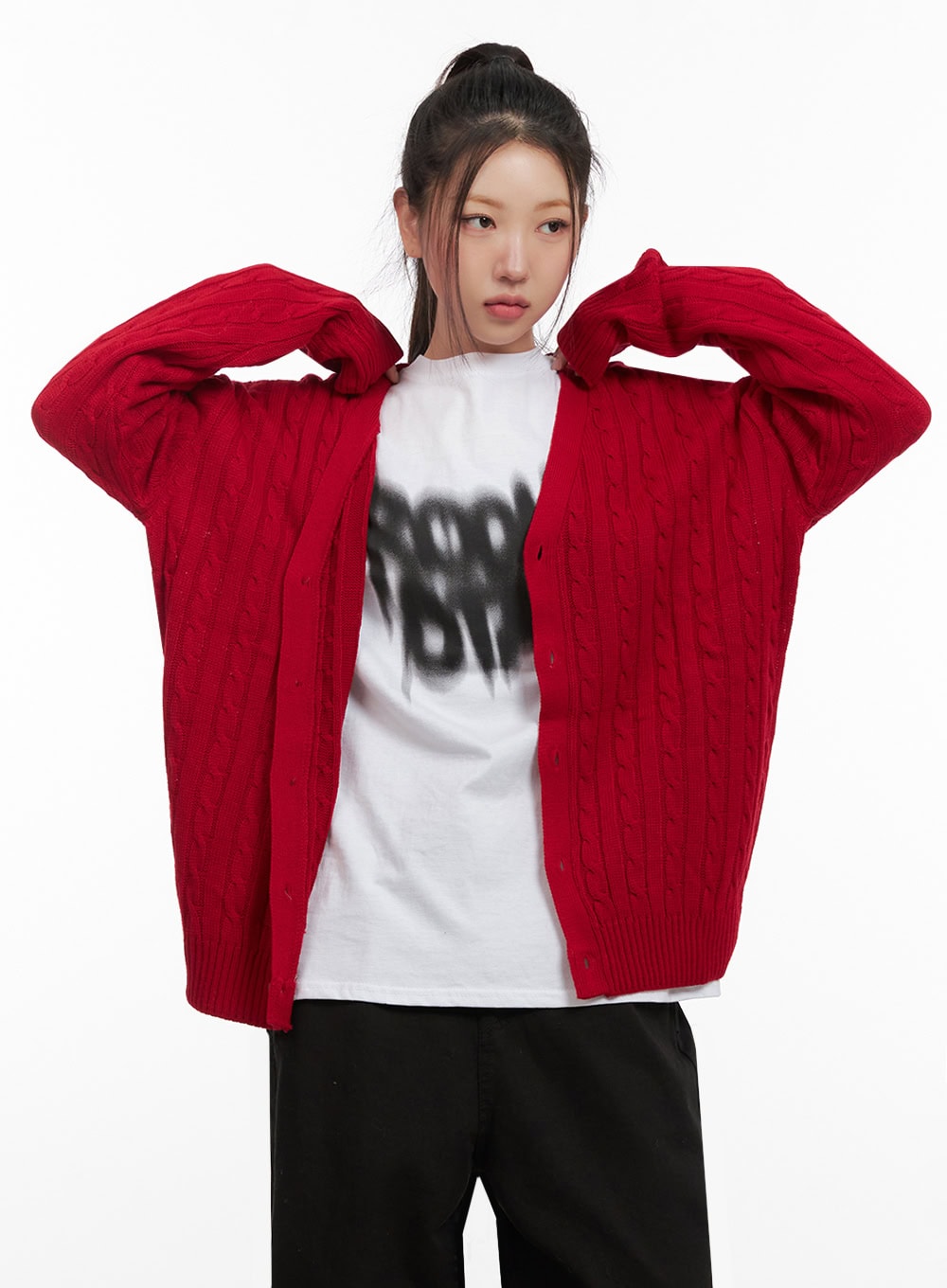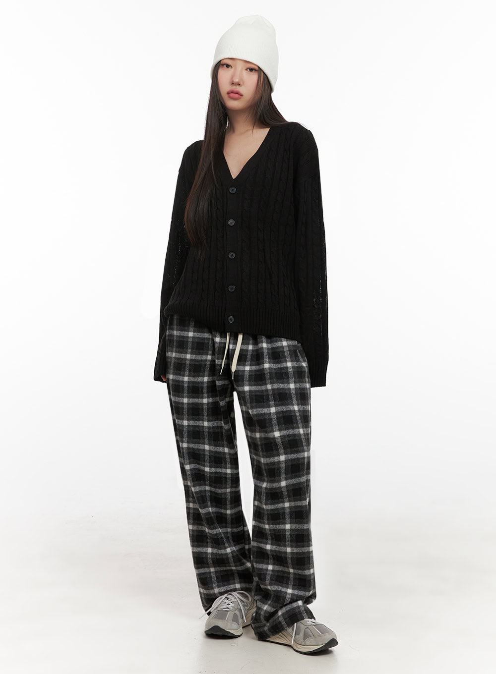Style : StreetDetail : CableMaterial : AcrylicSleeve : Long sleeveNeck : V neckLength : LongFit : Loose fitAcrylic100