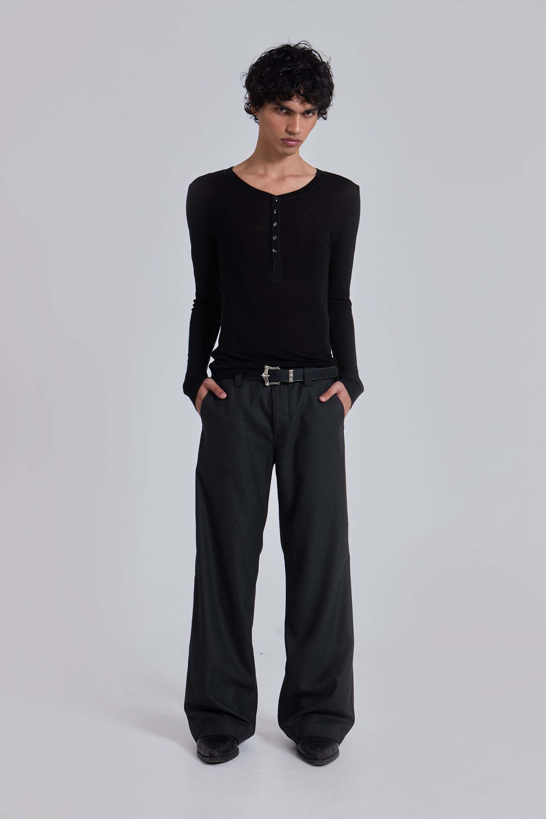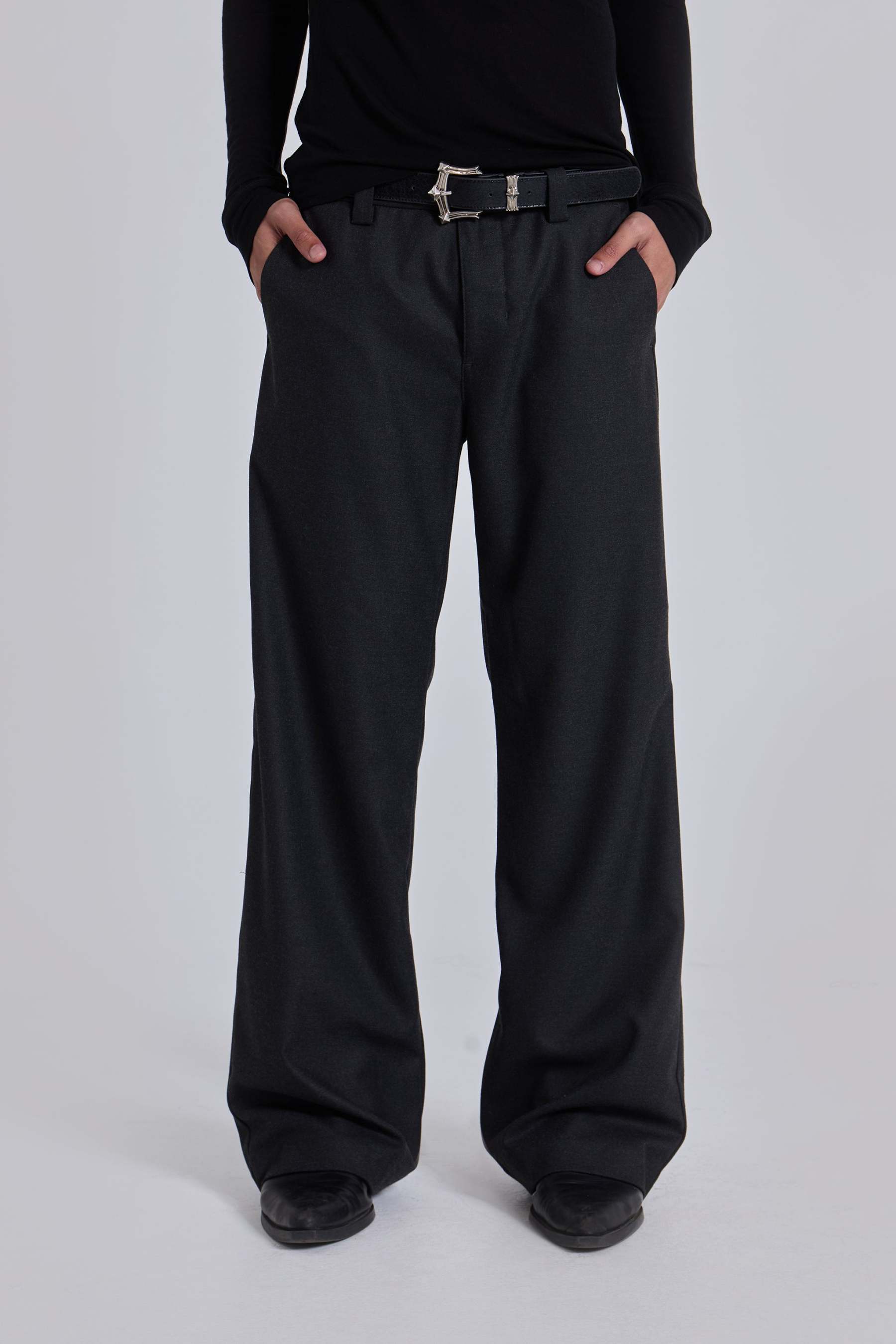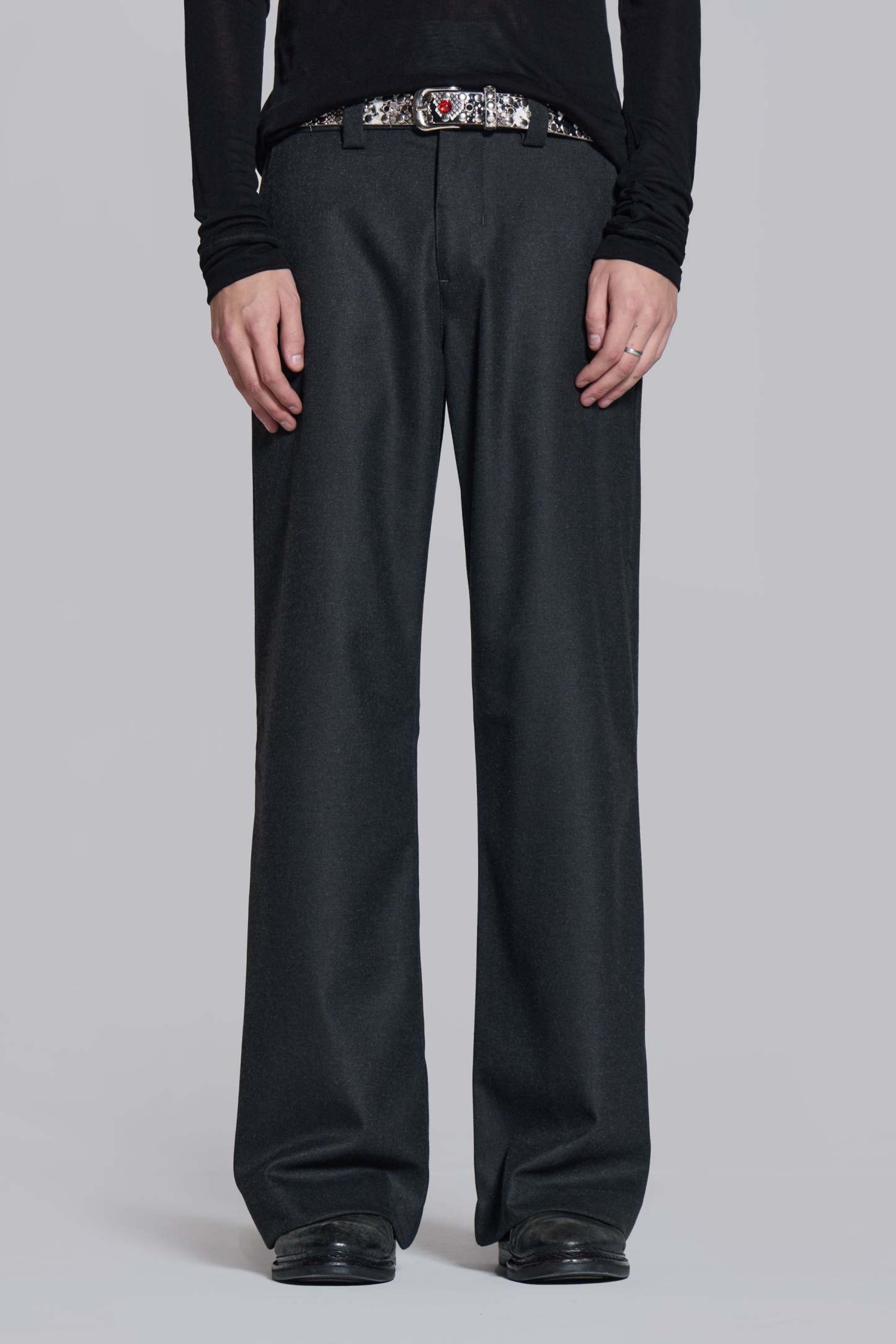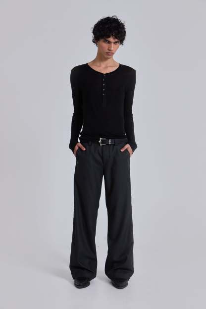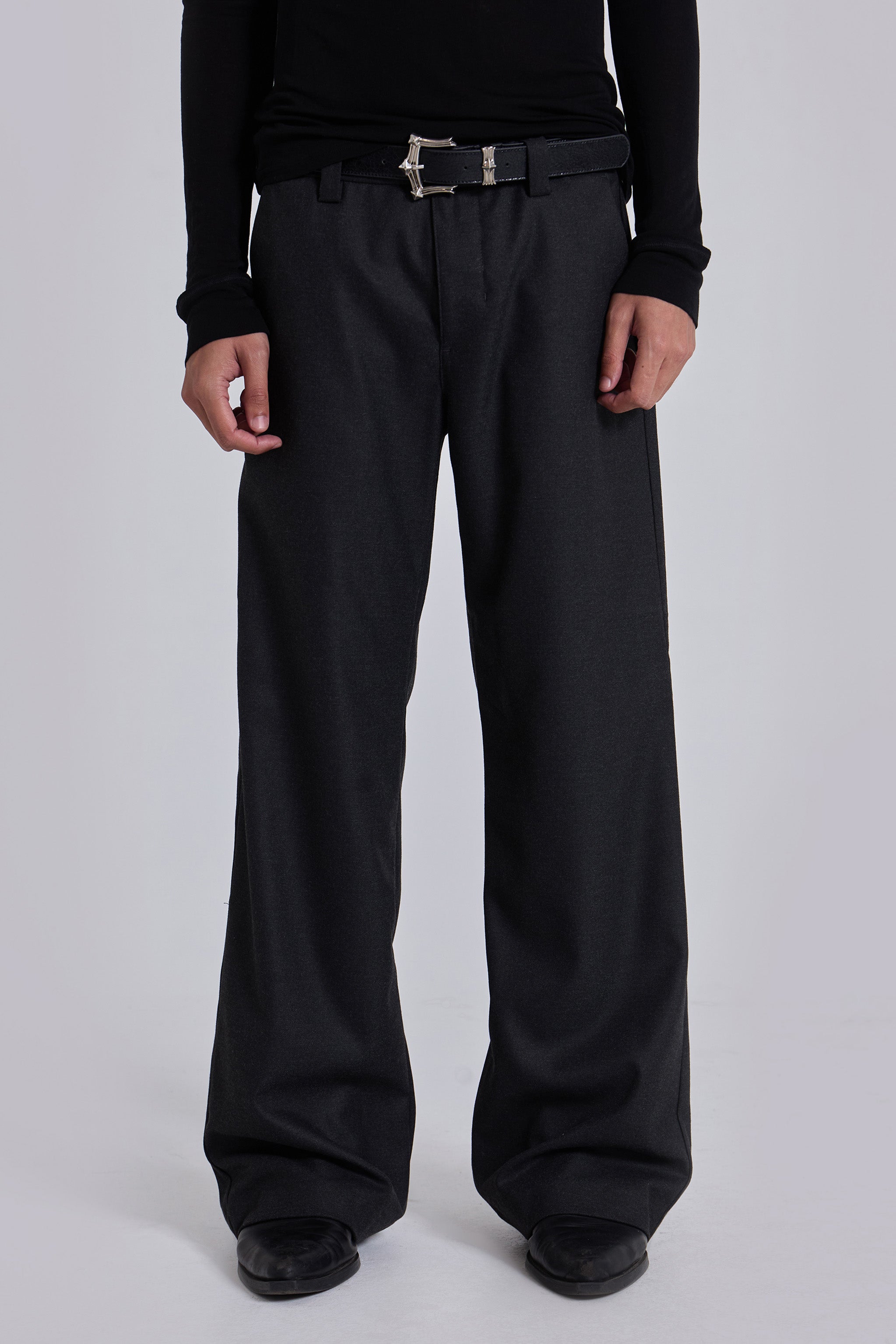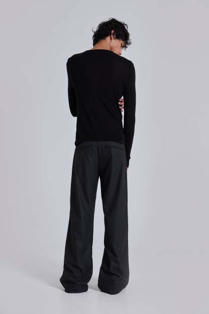 Charcoal Stacked Straight Suit Pants