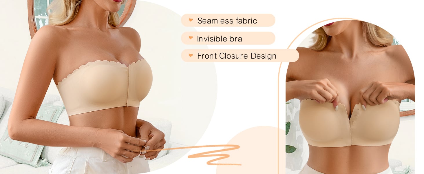 Seamless strapless bralettes featured a front closure design with wavy trim side on the top, which helps reduce back strain, front hook and eye closure for easy-off convenience, strapless design allows you to show off your shoulders and collarbone well, Very sexy and attractive!
