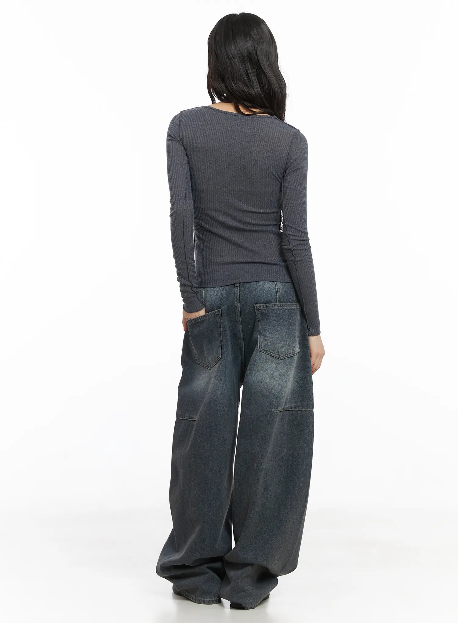 Style : Street, AcubiOccasion : Back to schoolDetail : PocketsPrint : WashedMaterial : CottonLength : LongFit : Wide fitCotton 100%Color : BlueModel Size