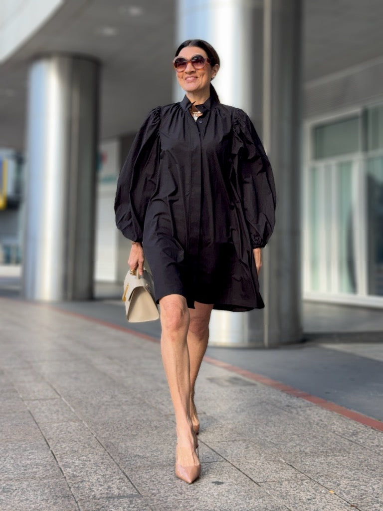 Get ready to turn heads in the Dress Kate Black by Marielle Stokkelaar. Made with luxurious Egyptian Cotton, it features trendy balloon sleeves for a unique and stylish look. Upgrade your wardrobe with this statement piece!Dress Kate Black has side pockets. The length of the dress is 92 cm / 36.2 inch