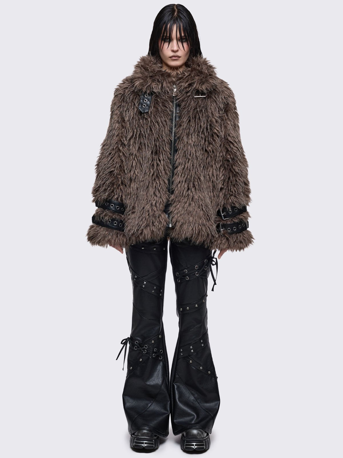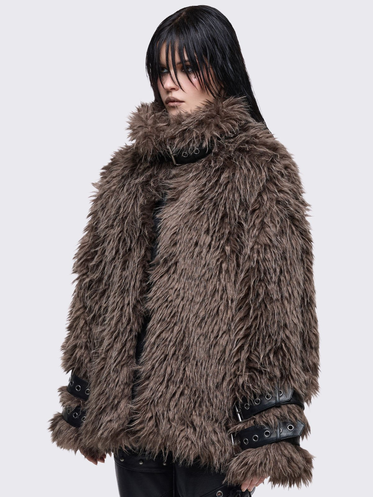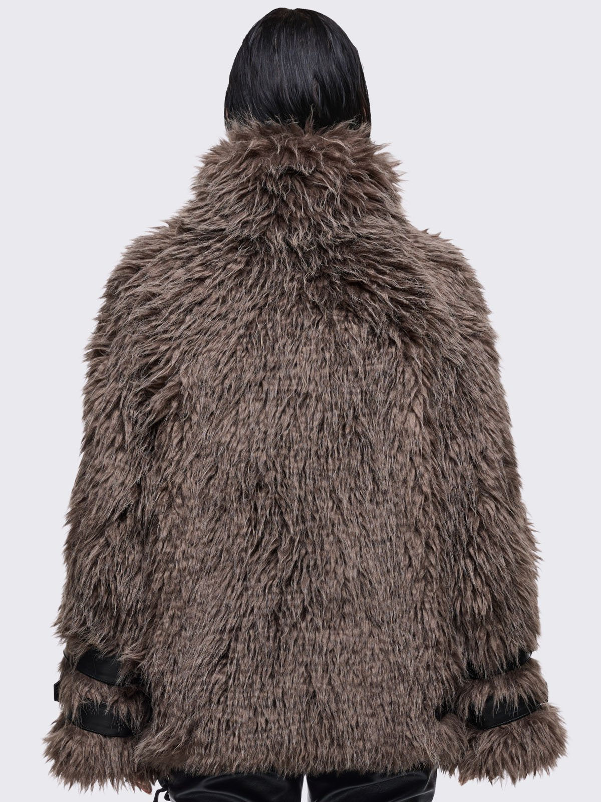 • Brown faux fur shaggy jacket