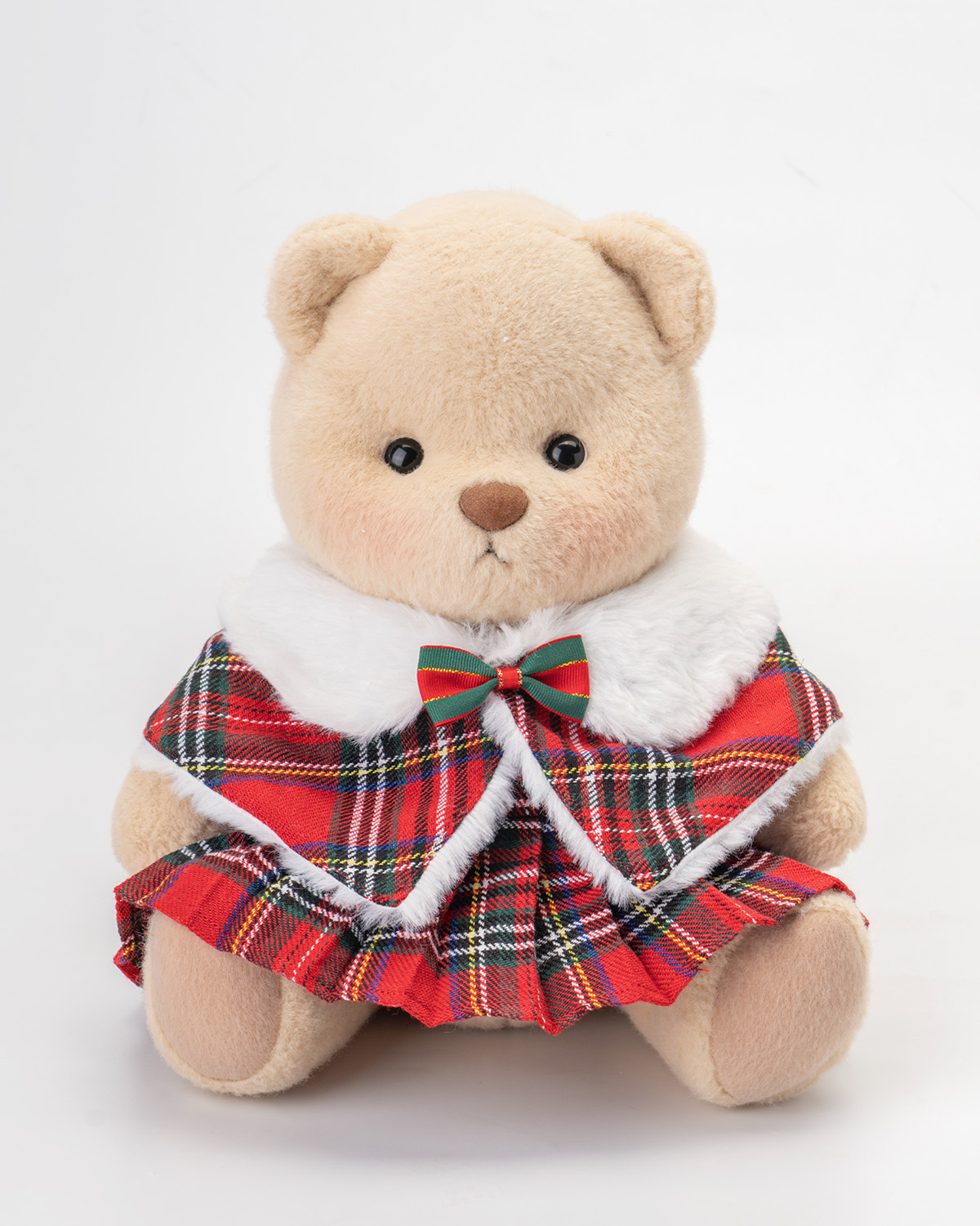 Getahug Christmas Red Plaid Cape Skirt Bear | Handmade Jointed Teddy Bear Gift