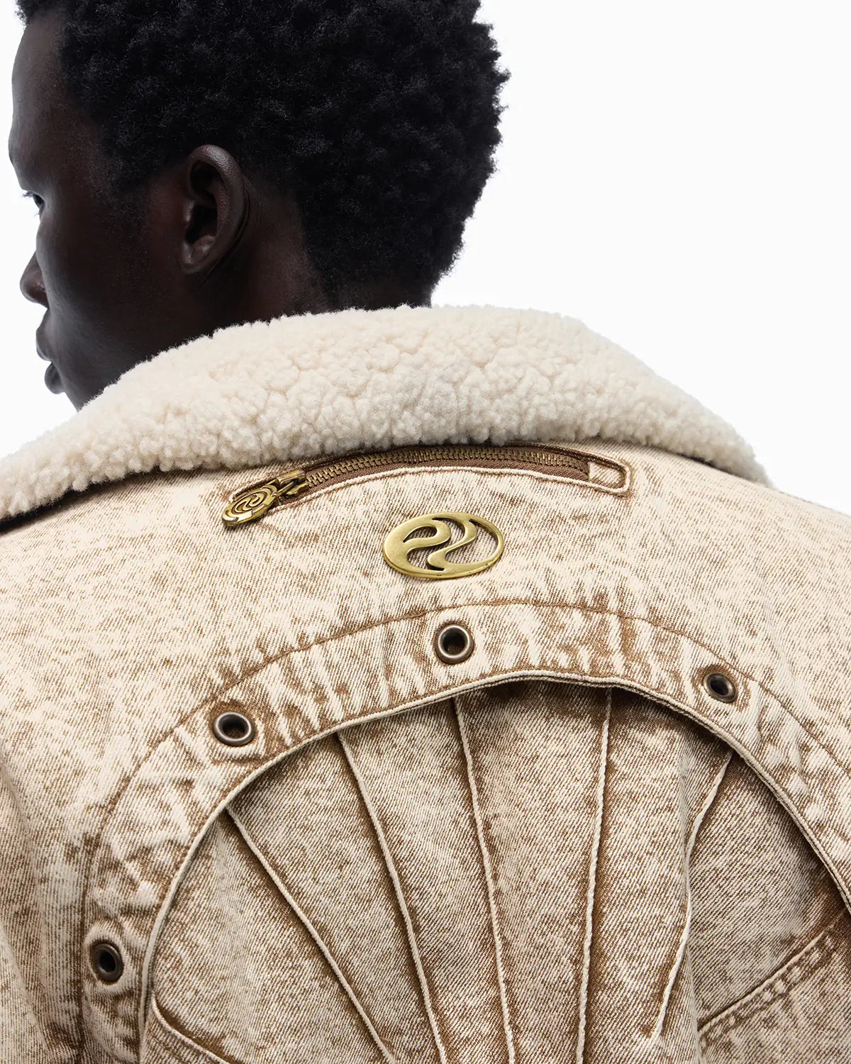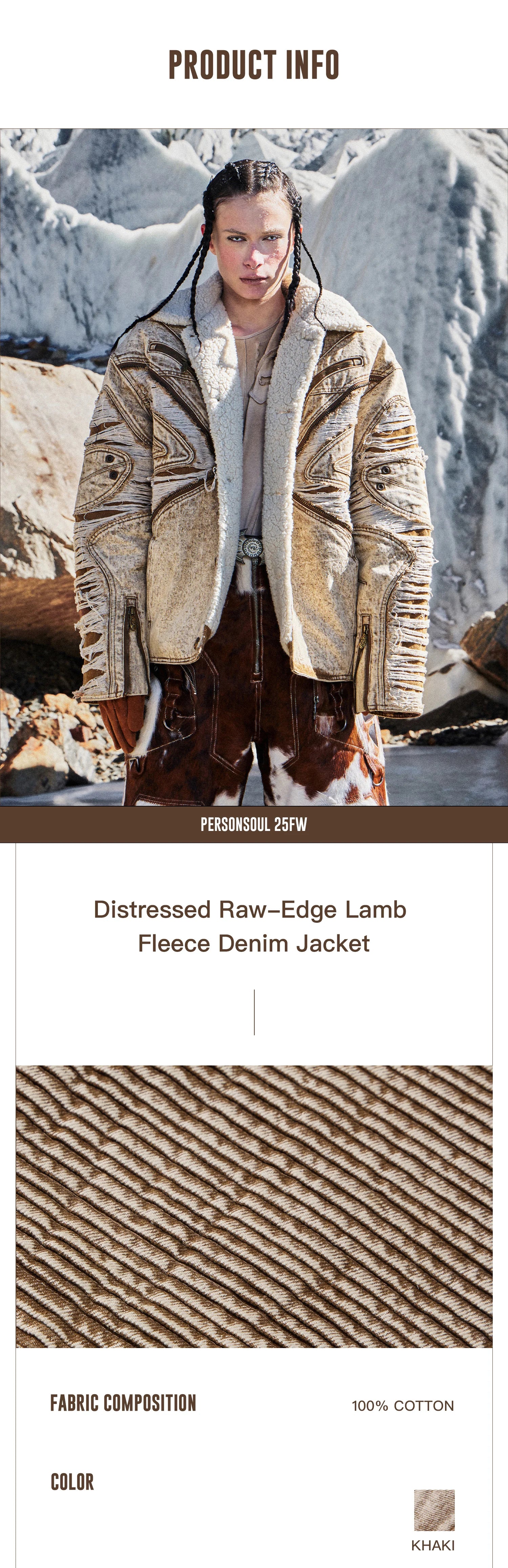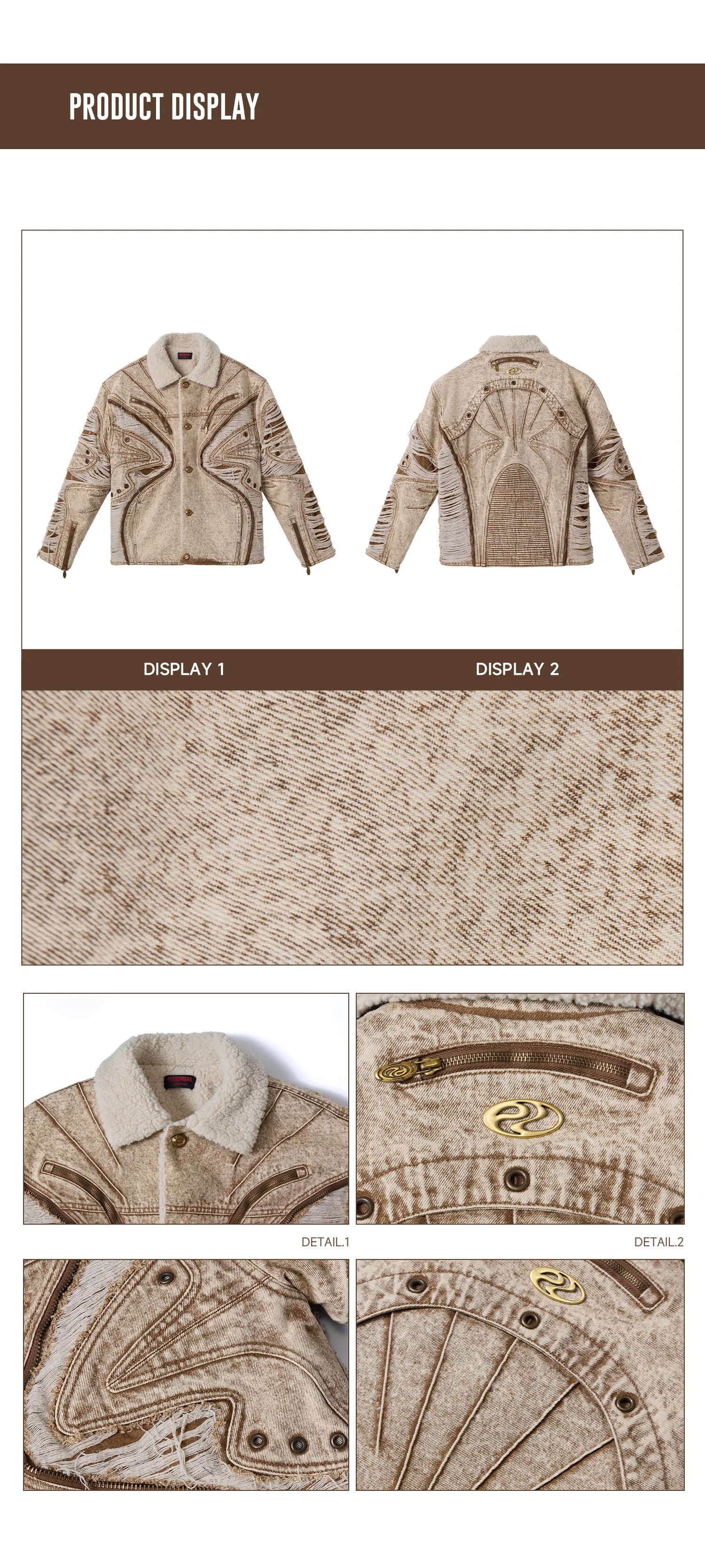 Personsoul Distressed Brown Denim Jacket with Faux-Fur Collar