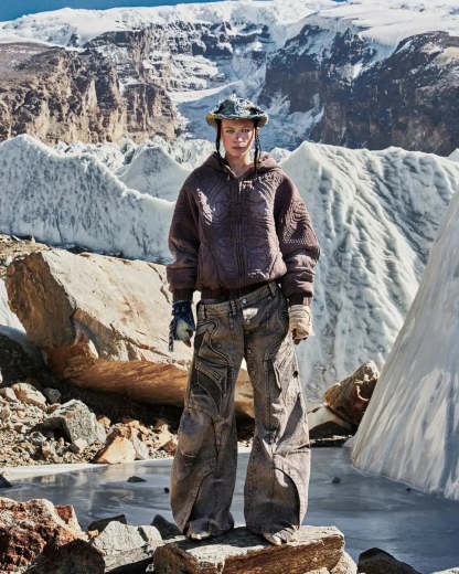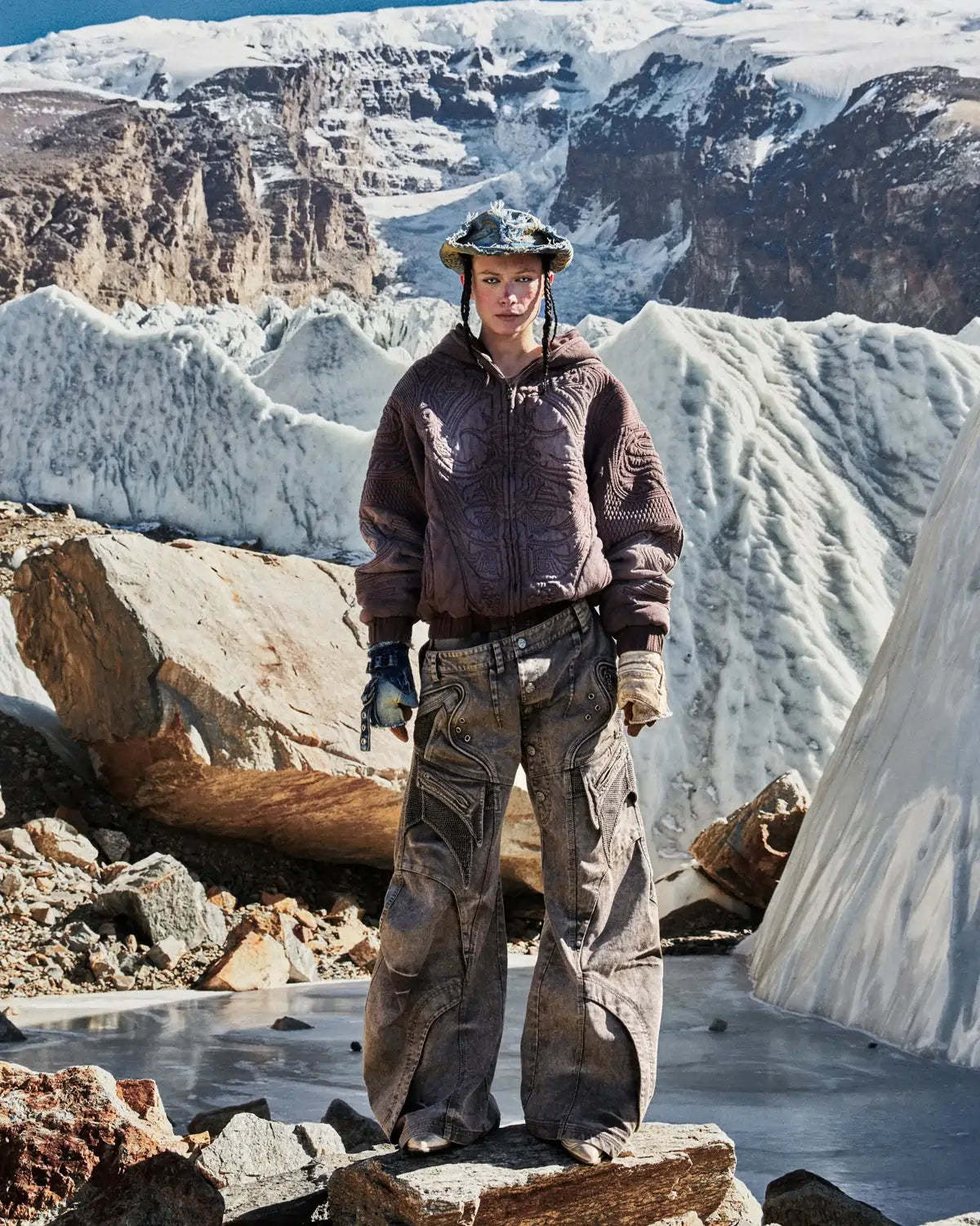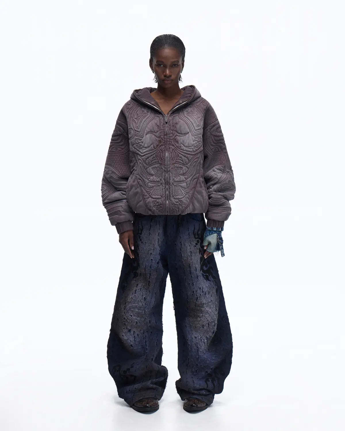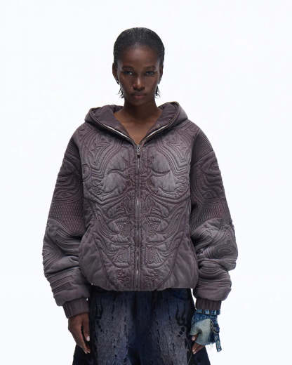Personsoul Textured Full-Zip Hoodie with Chinese Motif Embroidery