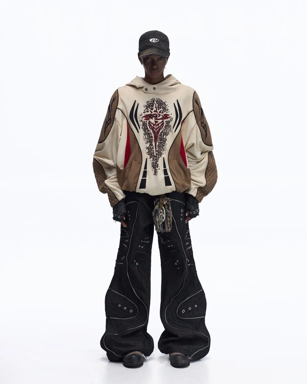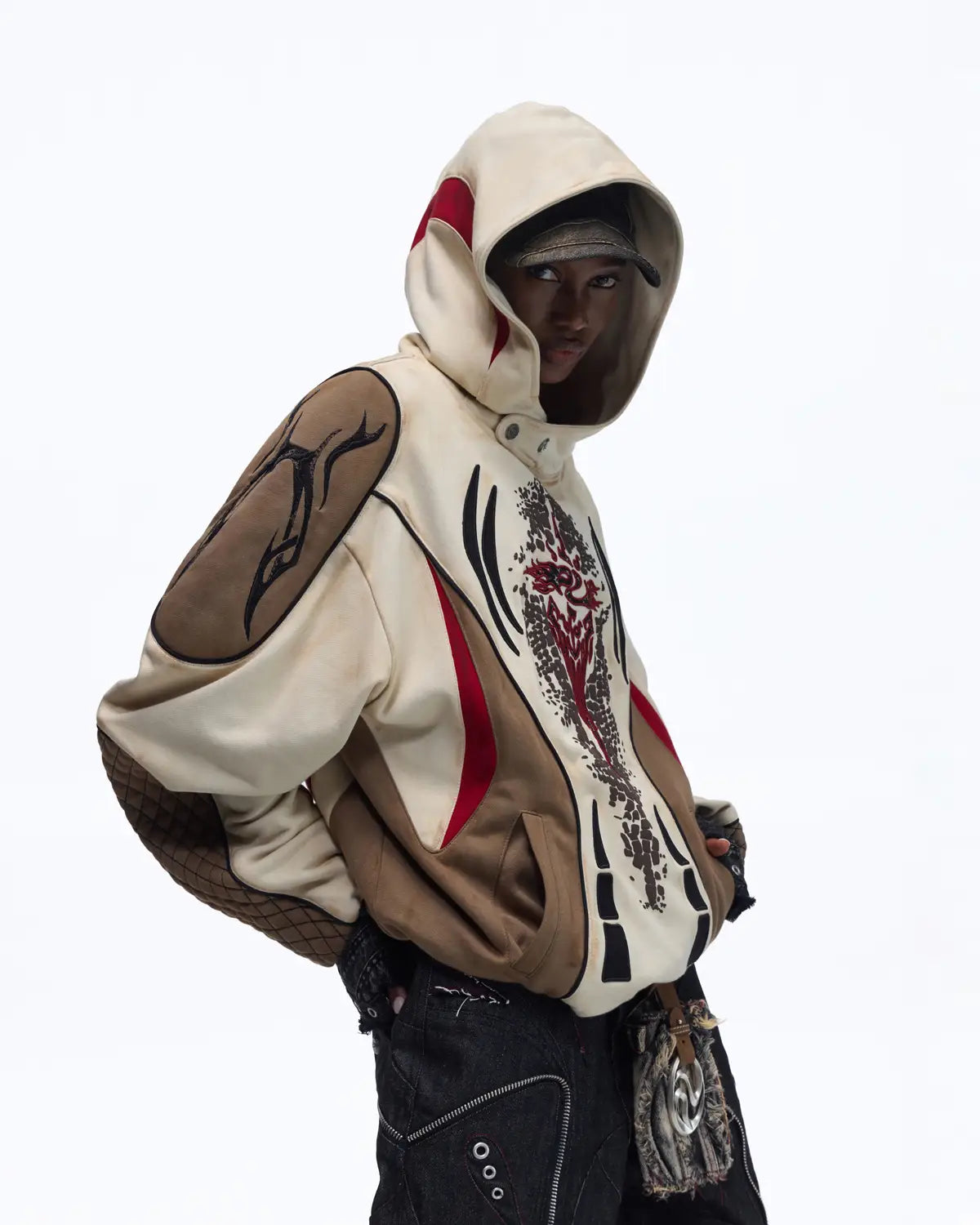 Personsoul Totem Color-Block Racing Hoodie In Brown