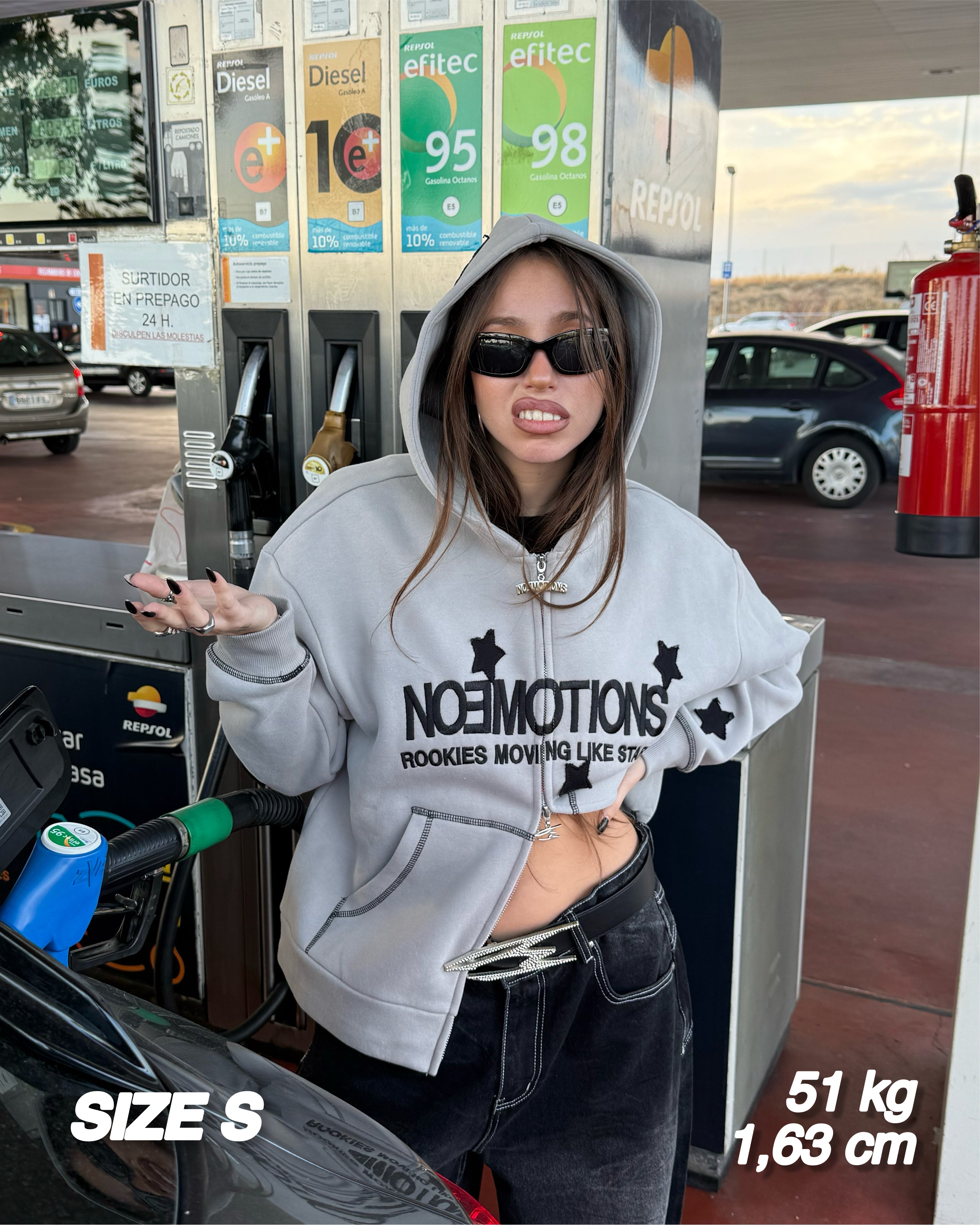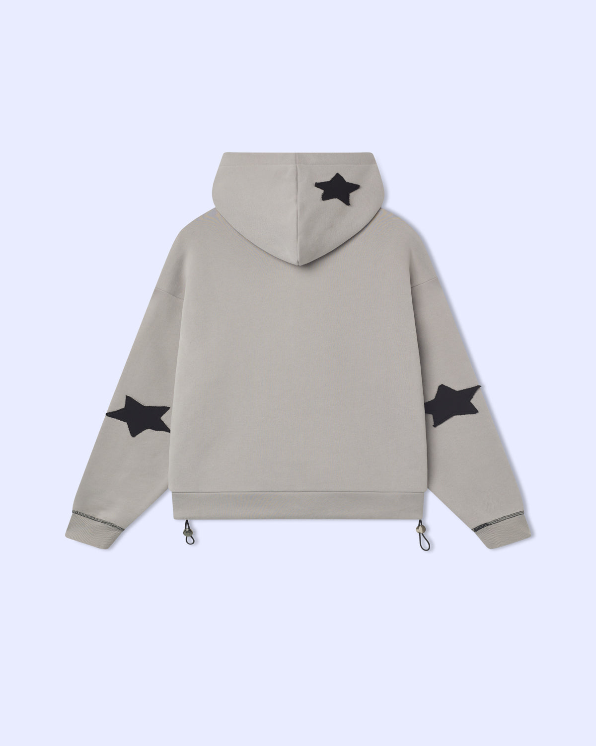 Double Zip Featuring. Custom Zip Zeadings. Boxy Fit. Seven Apliqué Pink Stars. Front Logo is Full Embroidery. Contrast Stiching on pocket and sleeves.