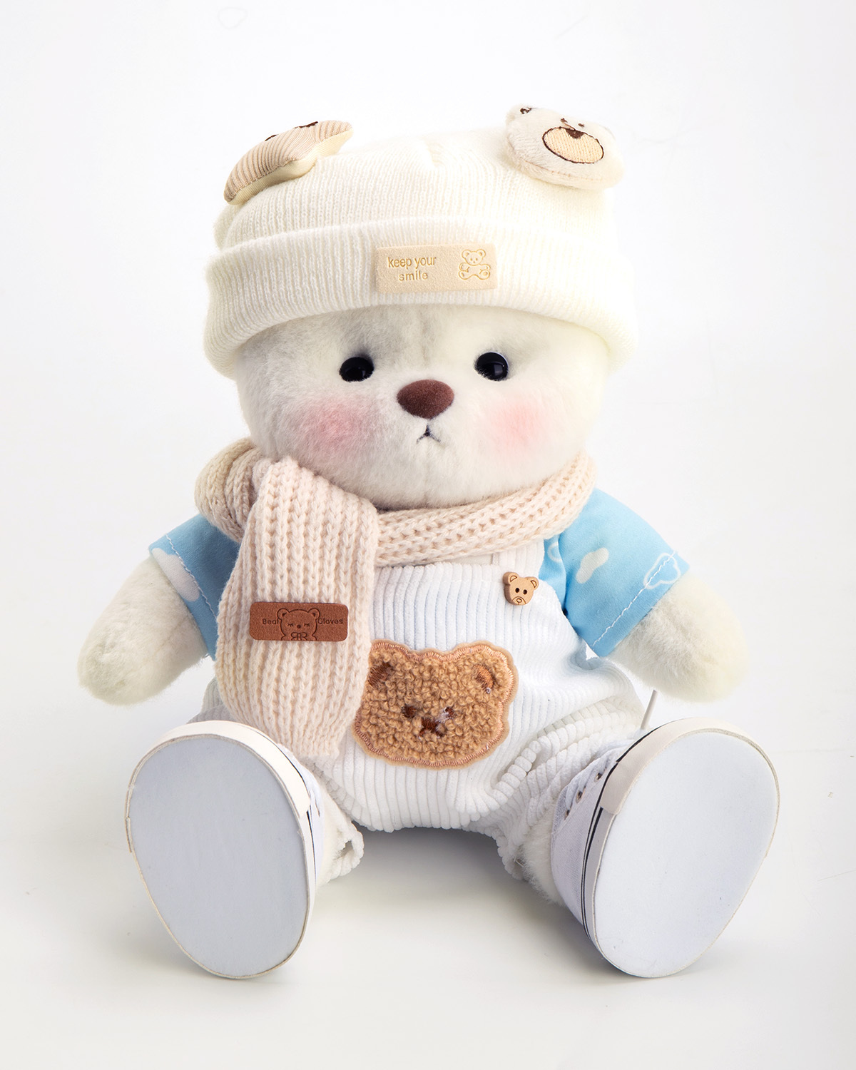Getahug White Overalls Cool Bear | Handmade Jointed Teddy Bear Gift