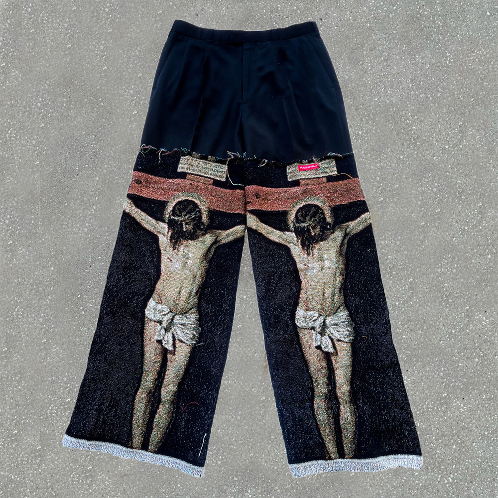 Vintage Patchwork Tapestry Jesus Wide Leg Pants