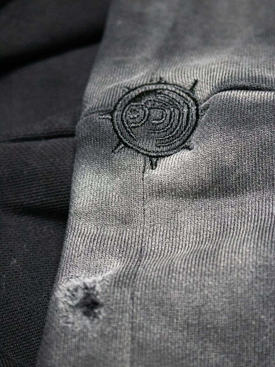 Distressed wash finish.