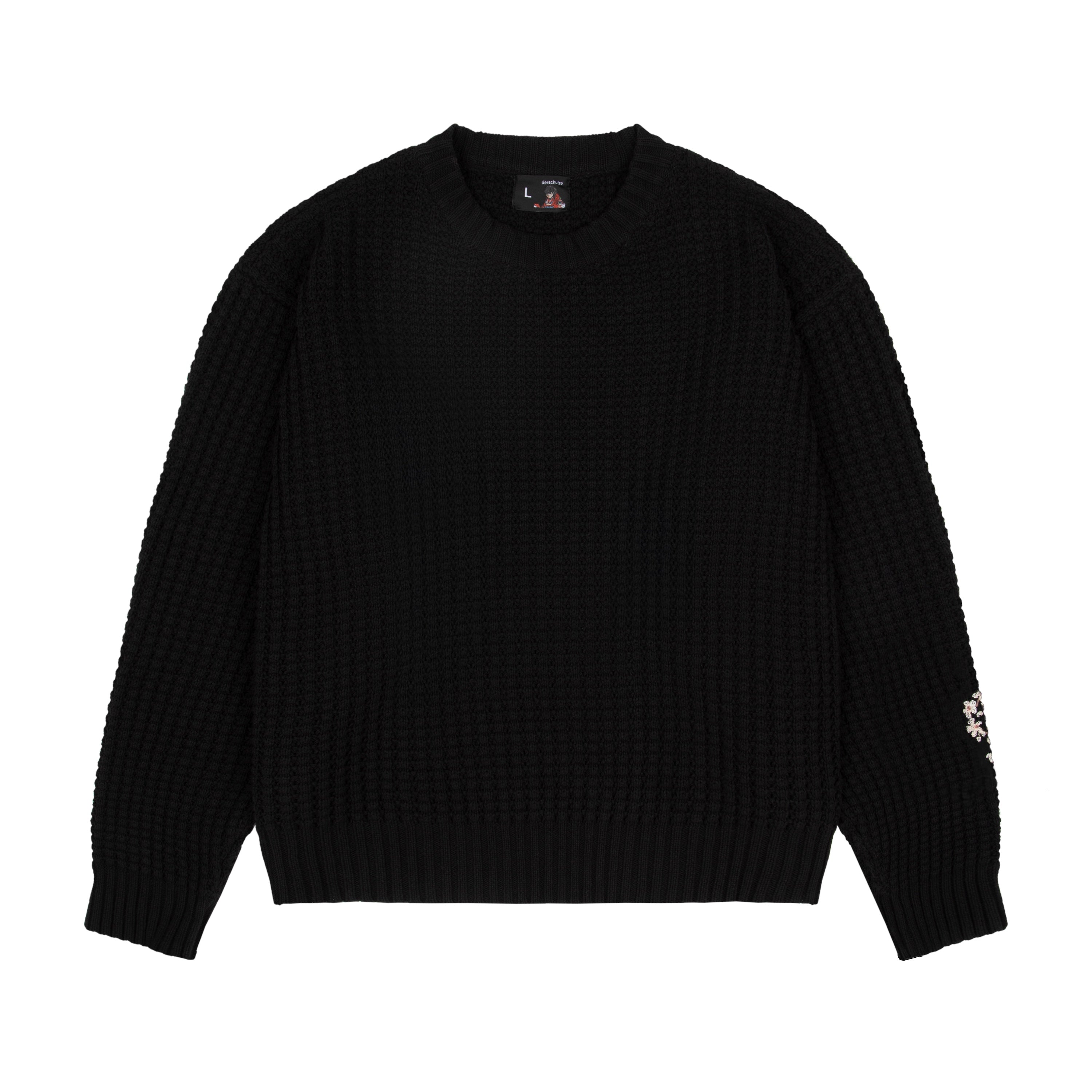 50% cotton 50% polyester / heavy weight knit / embroidery on back and sleeve / cropped fit / fits true to size