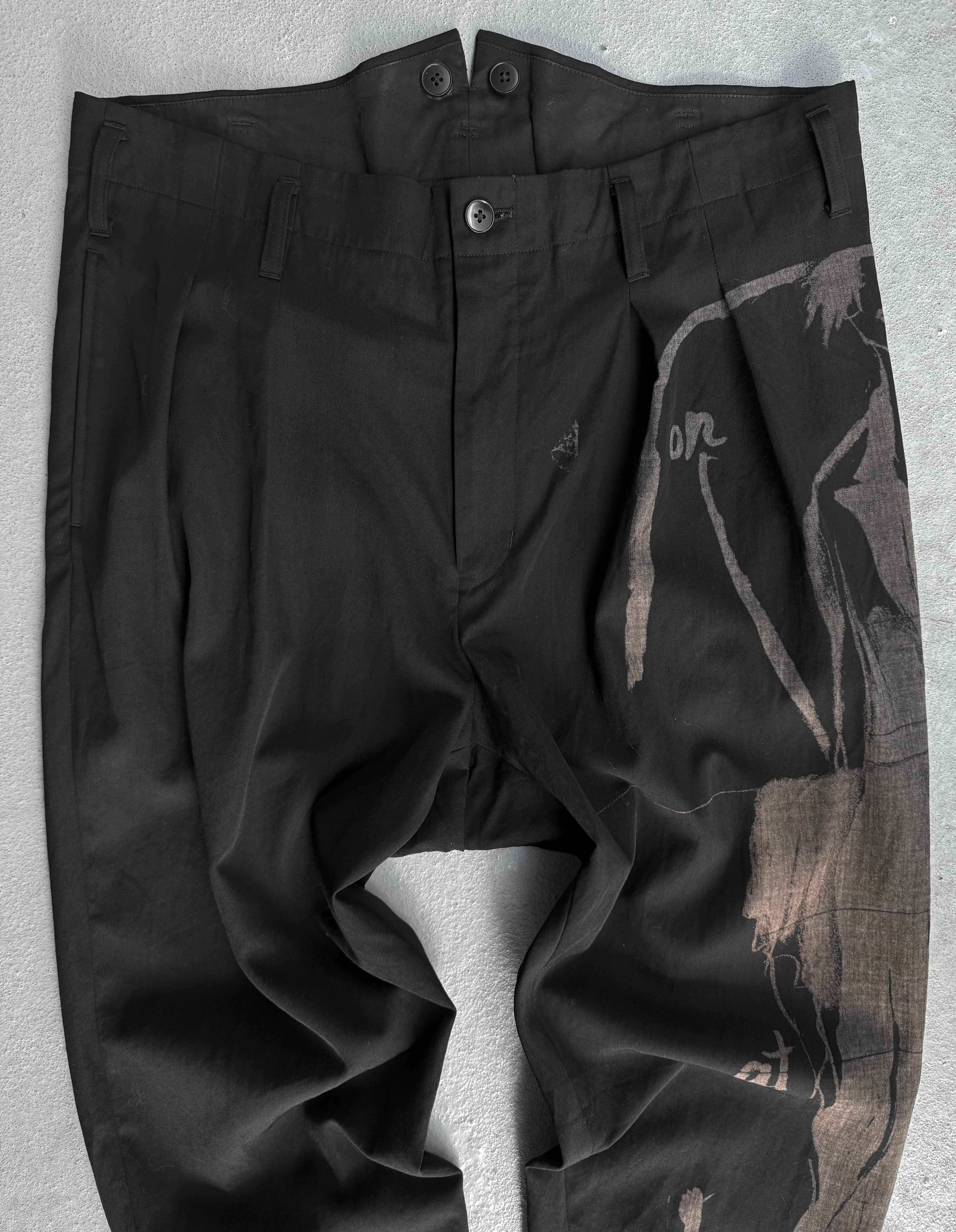 Yohji Yamamoto POUR HOMME SS17 Moody Graphic Pleated Drop-crotch Suspender Trousers