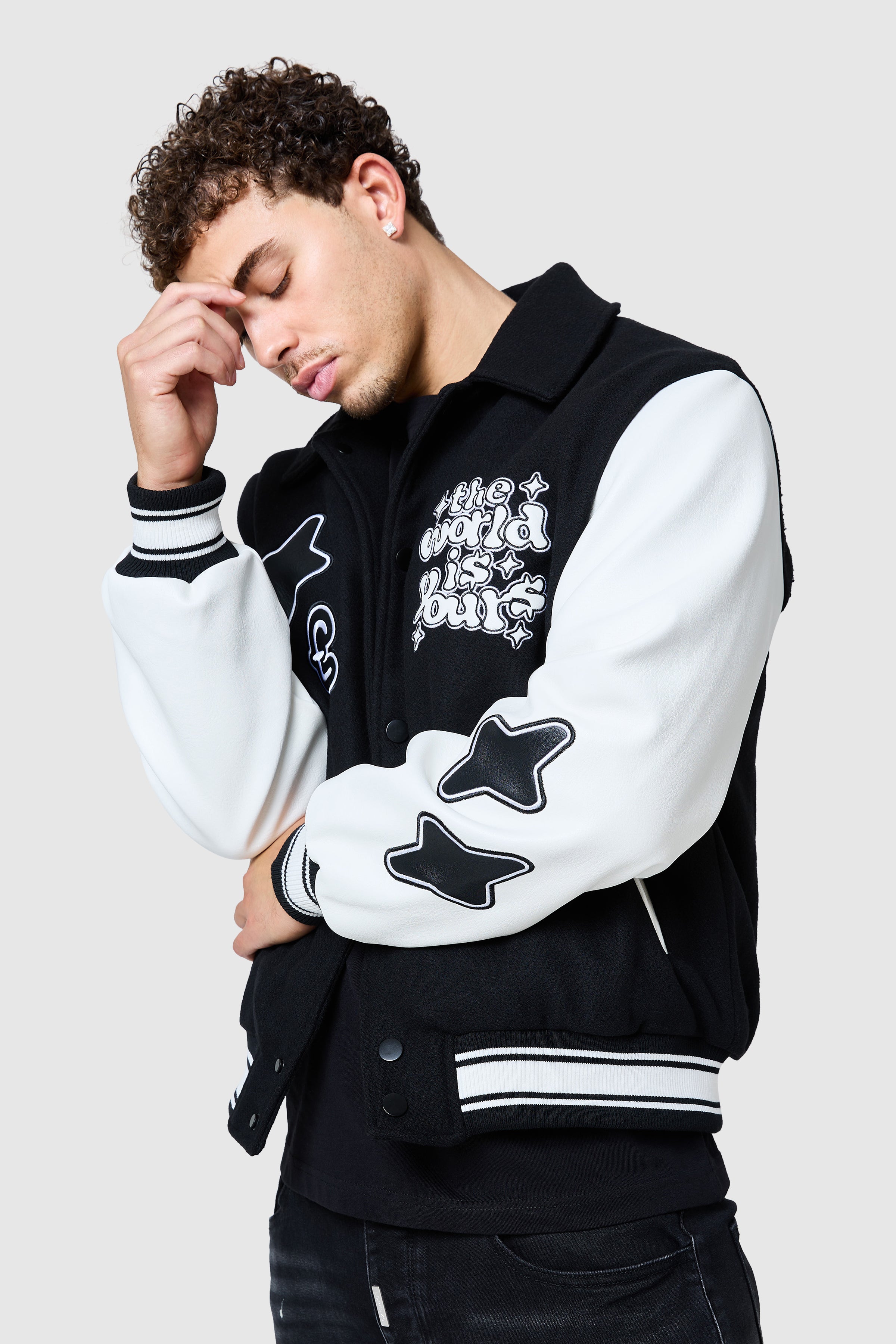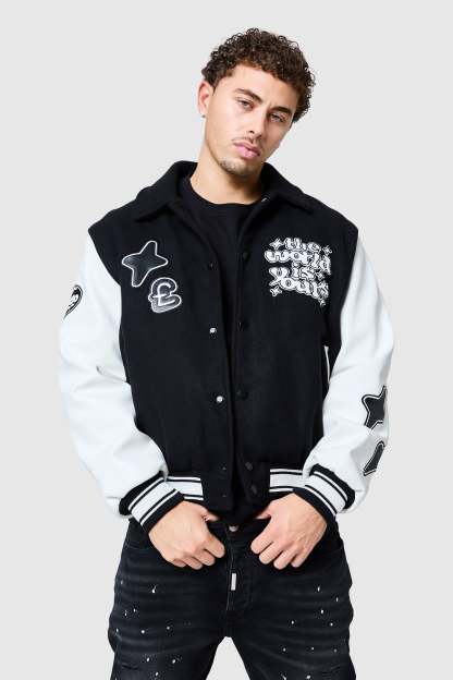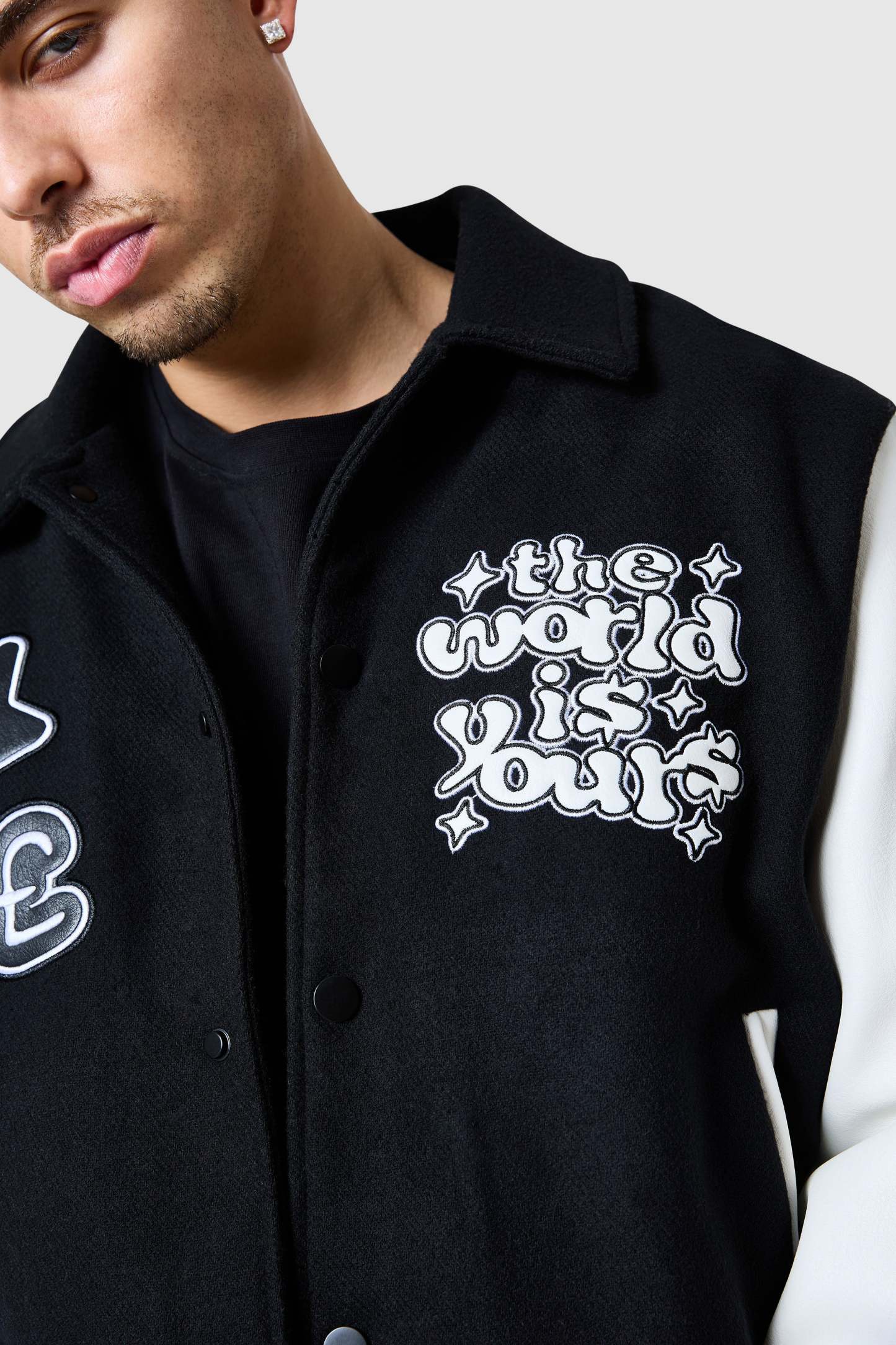 The World Is Yours Varsity Jacket features branded embroidery and applique.? This jacket combines functionality and style,? created with a premium wool blend fabrication.